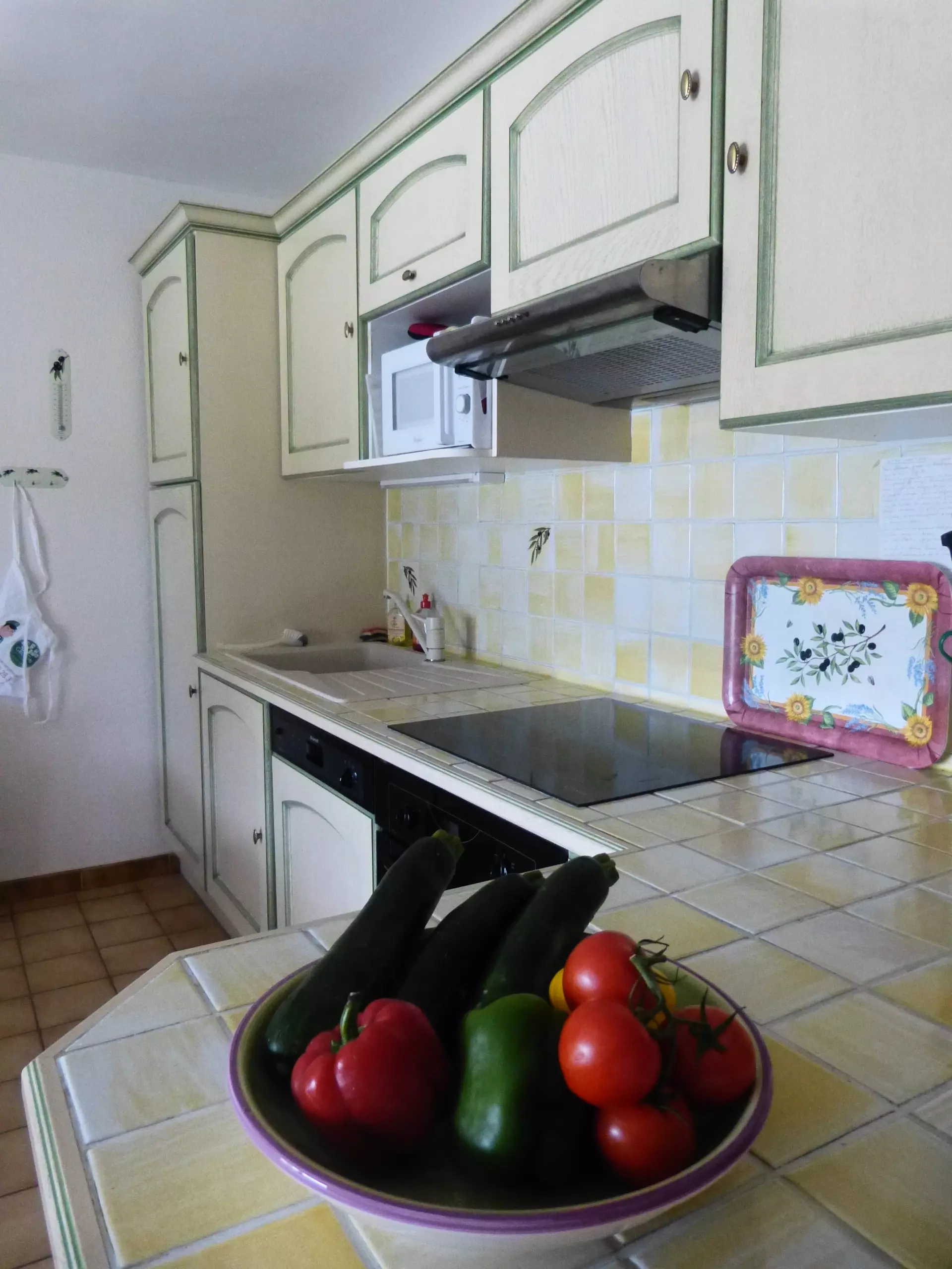 The apartment features two bedrooms with a double bed and two single beds, and a double sofa bed in the living room completes the sleeping arrangements. The fully equipped open-plan kitchen will allow you to prepare delicious family meals, with all the necessary amenities such as a refrigerator, oven, microwave, and dishes.