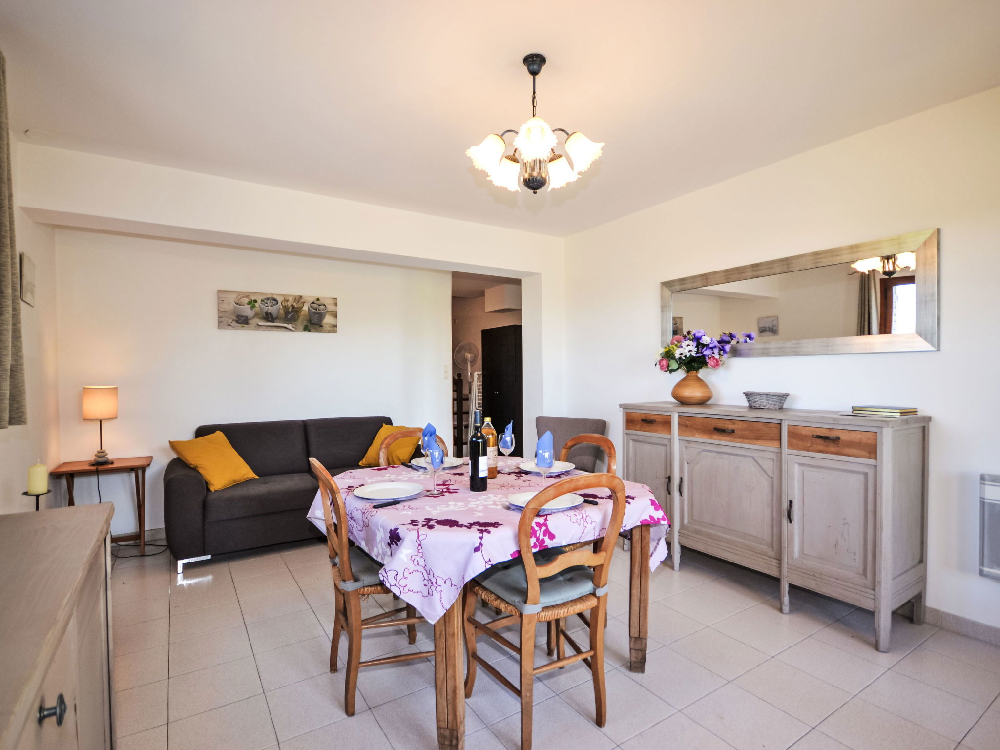 "Le Platane (VLE101)", 3-room apartment 65 m2, on the ground floor. Object suitable for 2 adults + 2 children. Practical furnishings: living/dining room with dining table and TV. Exit to the terrace. 1 room with 1 french bed, separate WC and shower. 1 small room with 2 beds. Kitchen (1 hot plate, oven, dishwasher, 3 gas rings, toaster, kettle, microwave, freezer, electric coffee machine) with dining table. Sep. WC. Electric heating. Terrace roofed, small garden. Terrace furniture. Facilities: washing machine. Internet (WiFi, free). Please note: non-smokers only. Private entrance.