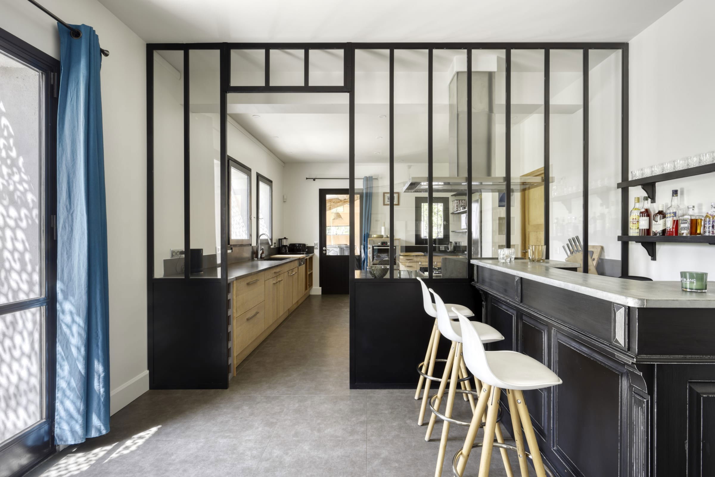 - Very well-equipped kitchen separated from the dining / living room by a glass roof