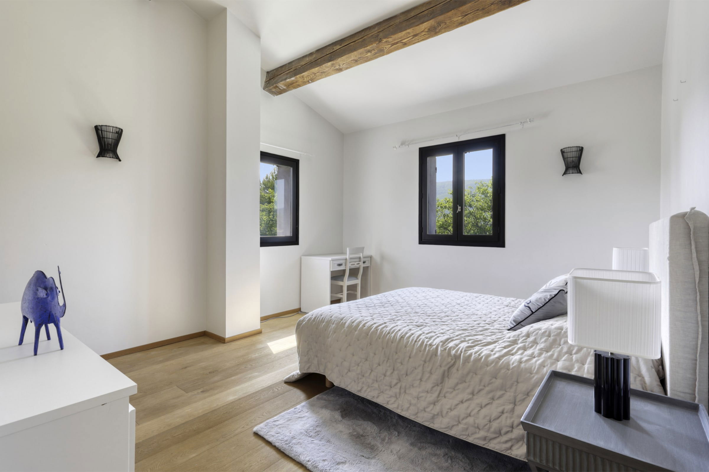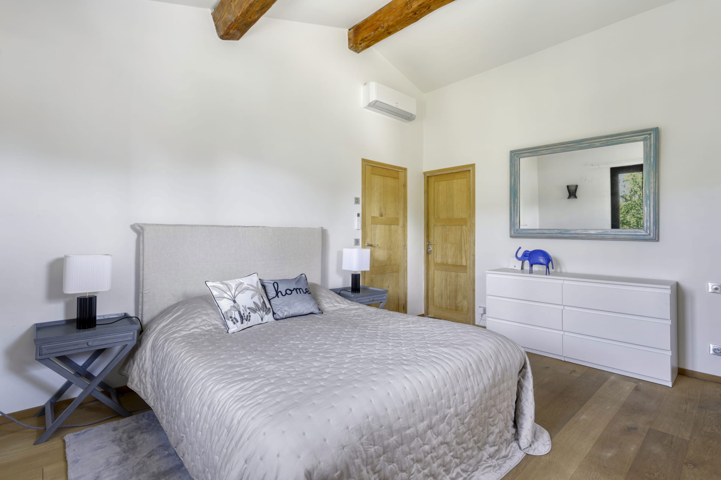 - Bedroom 1 air-conditioned: bed 160cmx200cm, flat screen, desk, wardrobe, en suite shower room and separate toilet