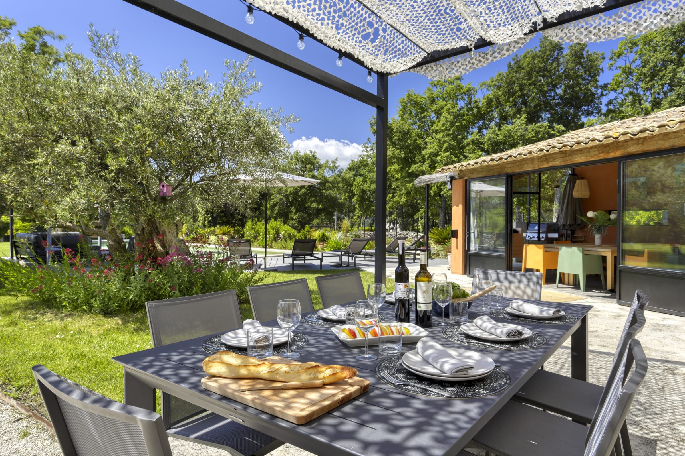 - 6 garden lounge, parasol, hamac, gazebo, large table under the pergola for 12 people