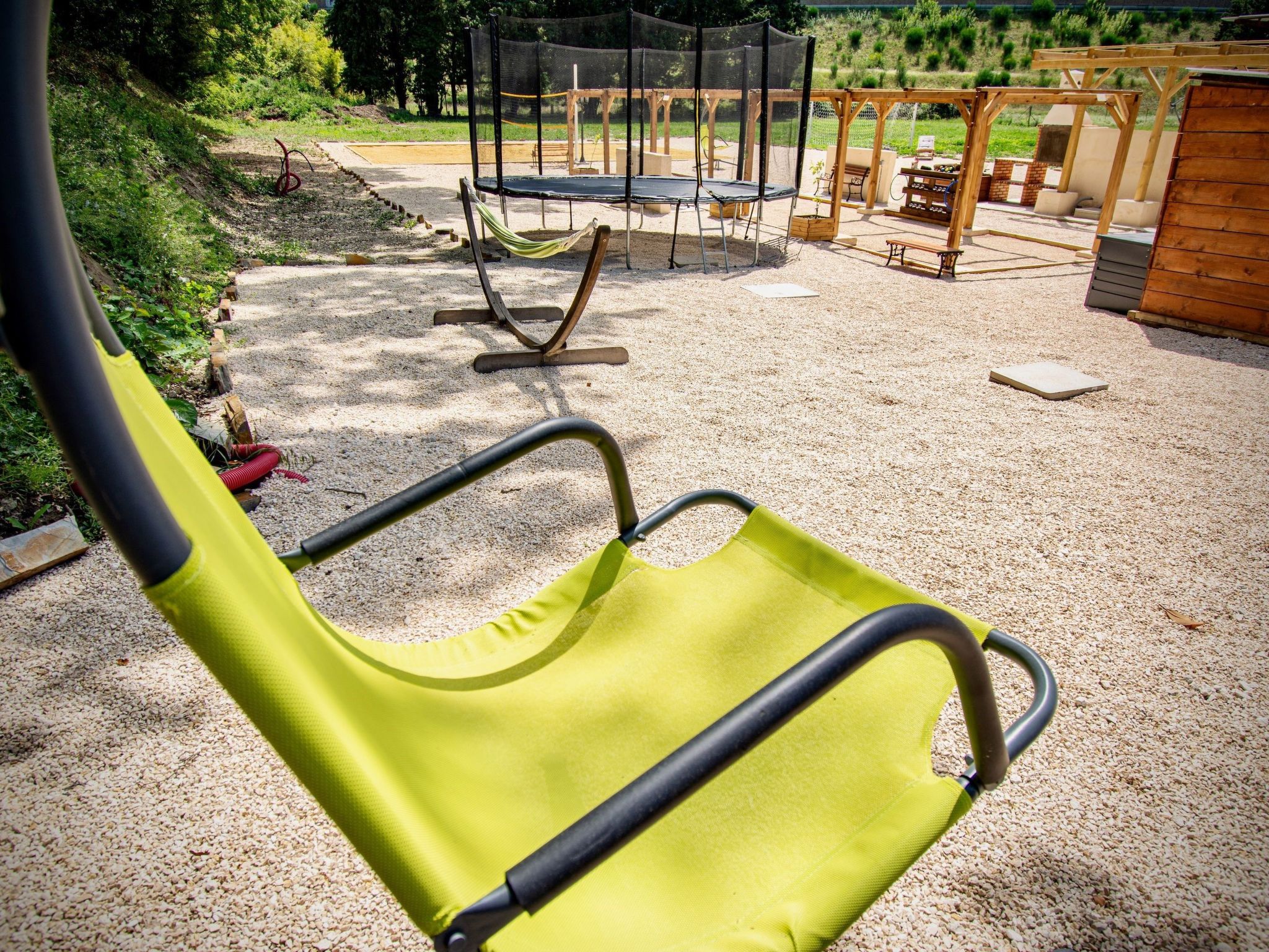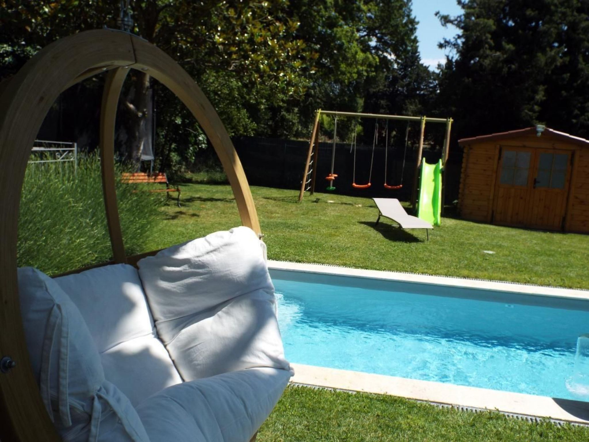 The garden includes garden furniture, an unsupervised heated swimming pool 7 by 3 by 1.50 metres deep (open from April to September) protected by a wrought iron fence and a protective curtain to C.E. standards. (a liability waiver will be requested from each guest for each stay) open from 8 a.m. to 8 p.m. for safety reasons, a swing in the form of a gantry under the responsibility of the parents (open from April to October), a trampoline limited to one person and weighing less than 90kg (open from April to October), a garden gondola limited to 90kg with its cushions.