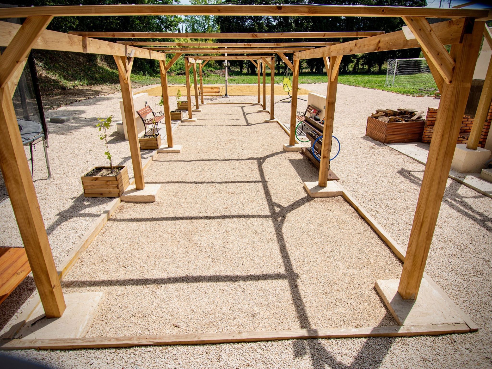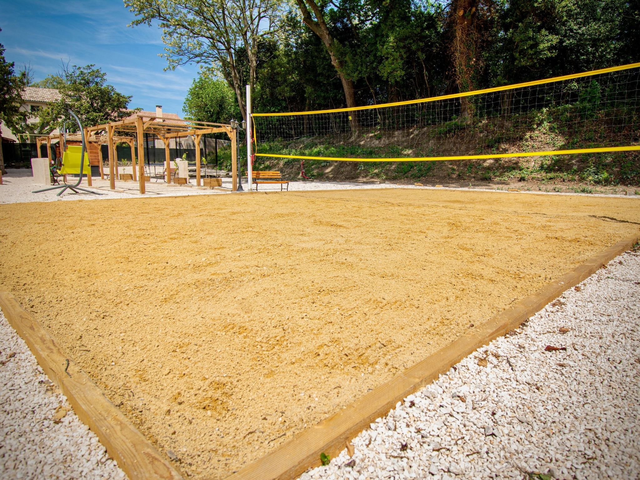 basketball hoop, football pitch, boules pitch and beach volleyball court,