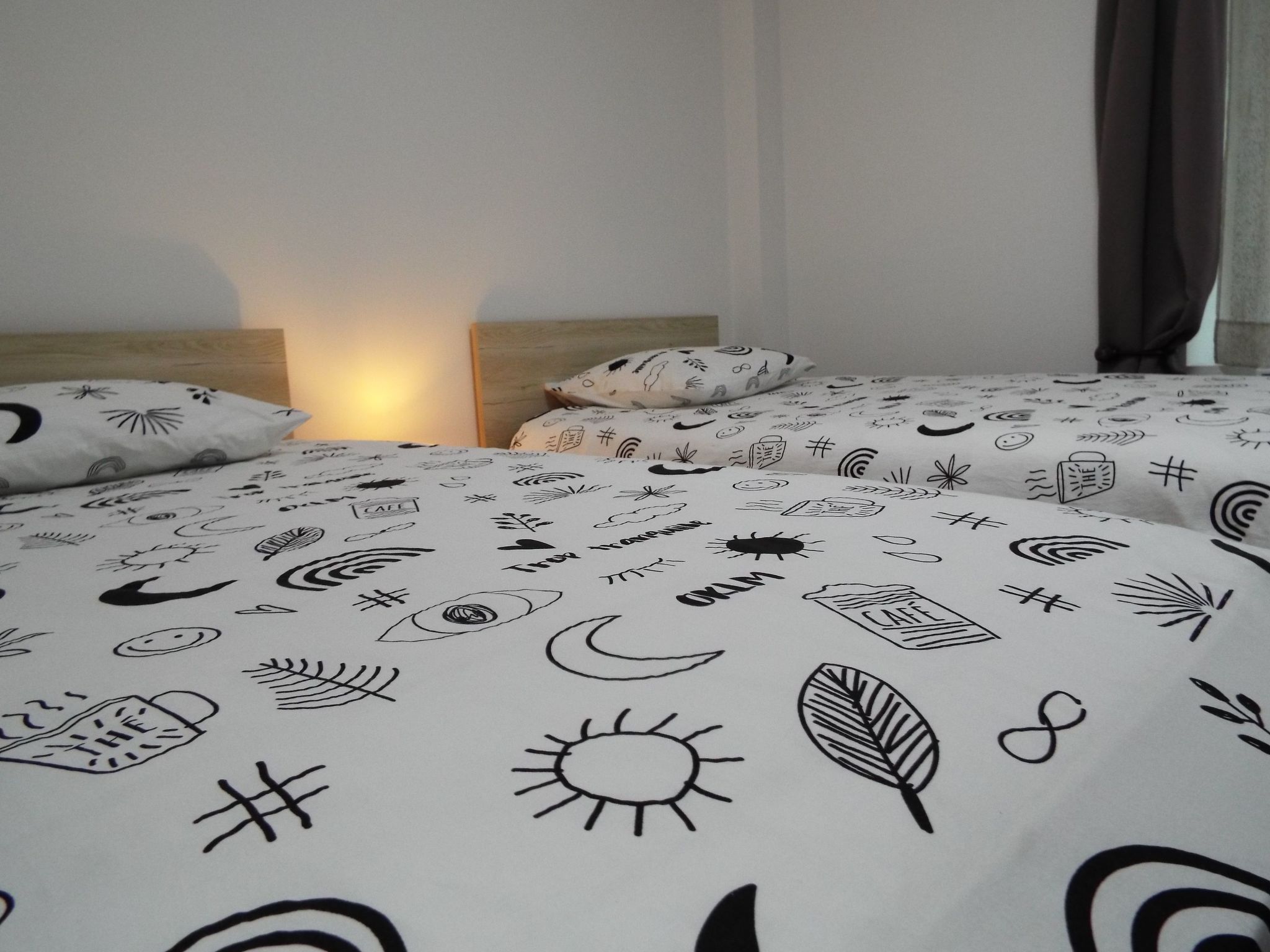 The second bedroom has two separate beds and a large wardrobe.