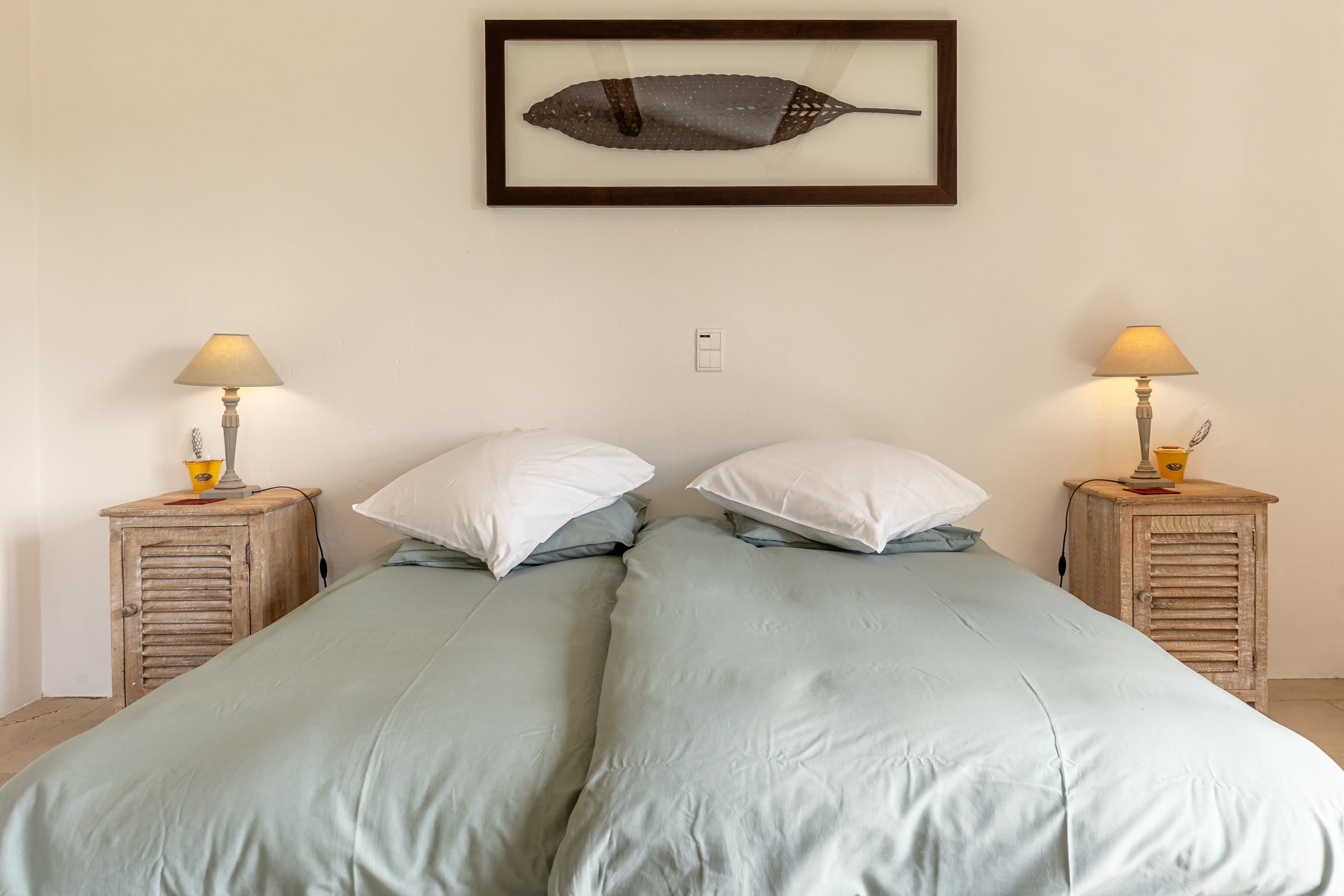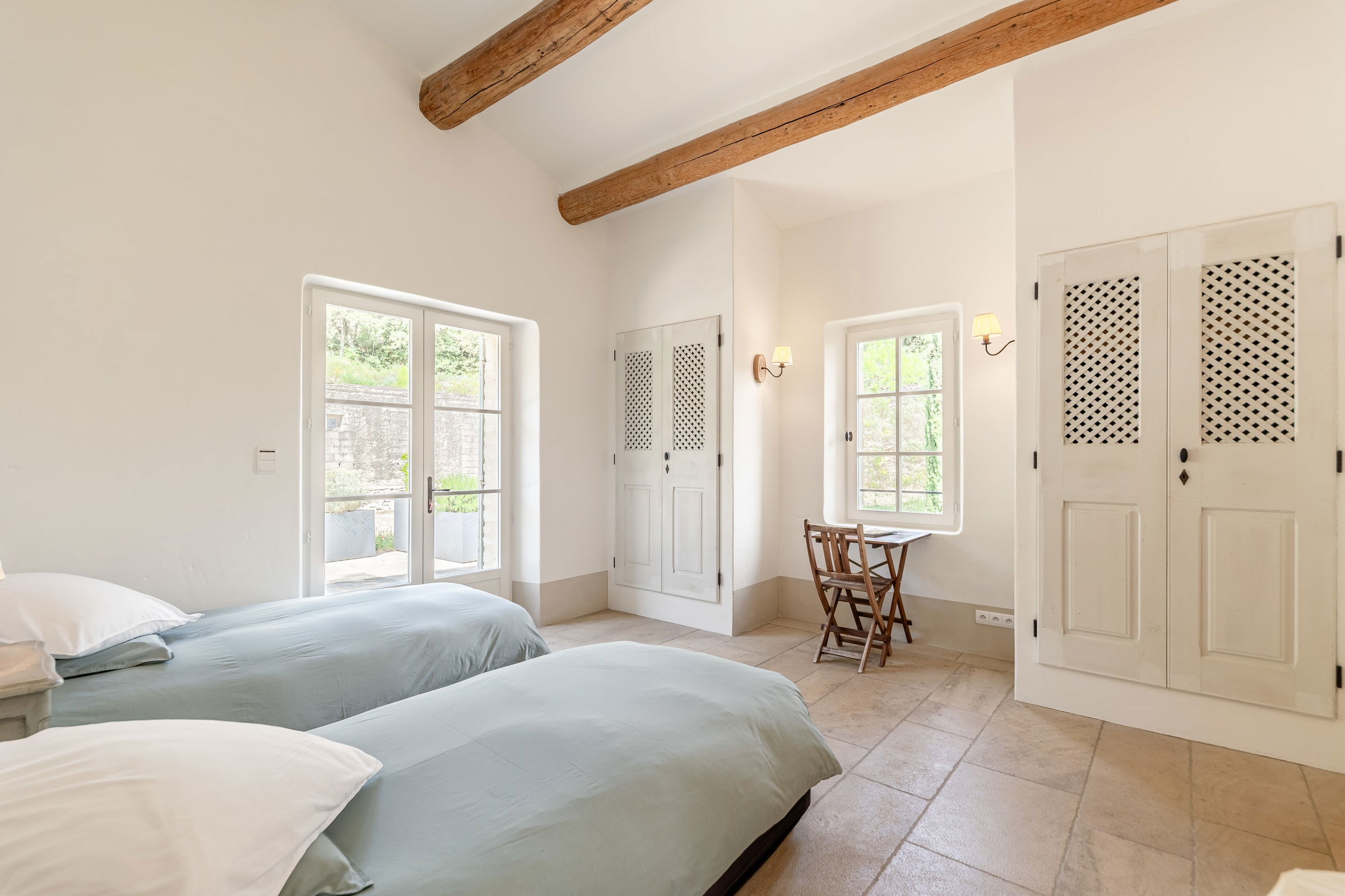 - Bedroom 2: 2 single beds 90x200cm, wardrobe. En suite with shower room, one sink, and toilet