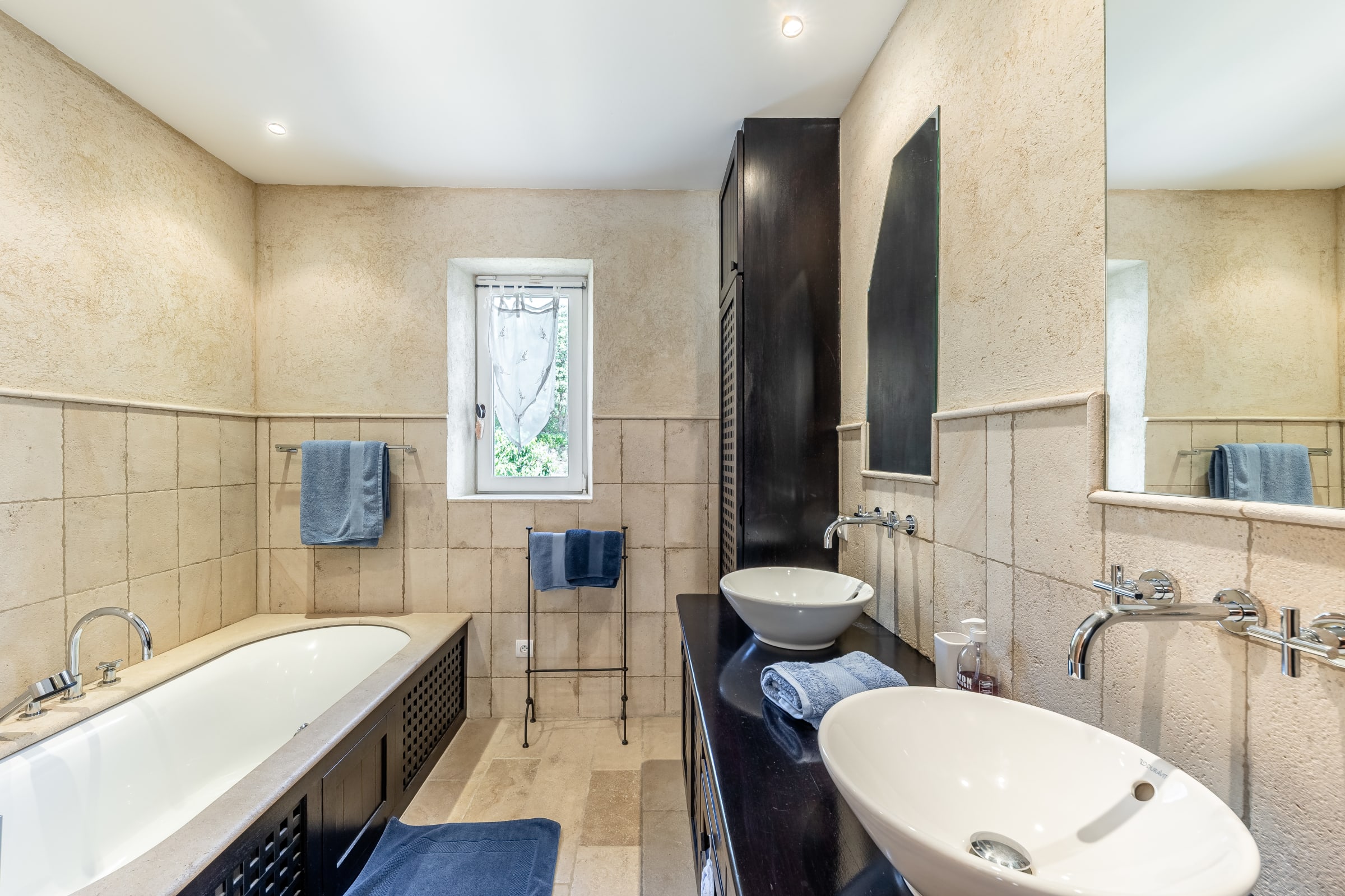 - Bedroom 1: 160x200cm bed, wardrobe, en suite with a bathroom (bathtub and shower), 2 sinks, toilet