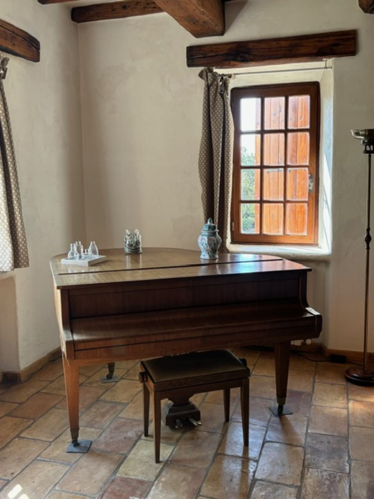 The bright living room, bathed in natural light, provides a peaceful haven where you can relax with a good book or simply take in the calming views of the surrounding area. Additionally, it features a magnificent piano, adding a touch of elegance and music during your stay.