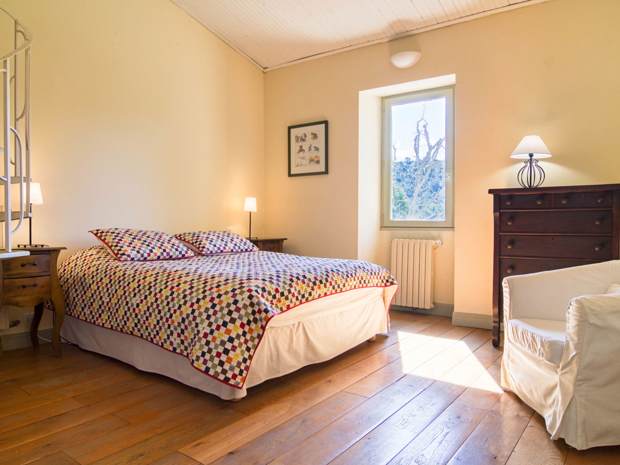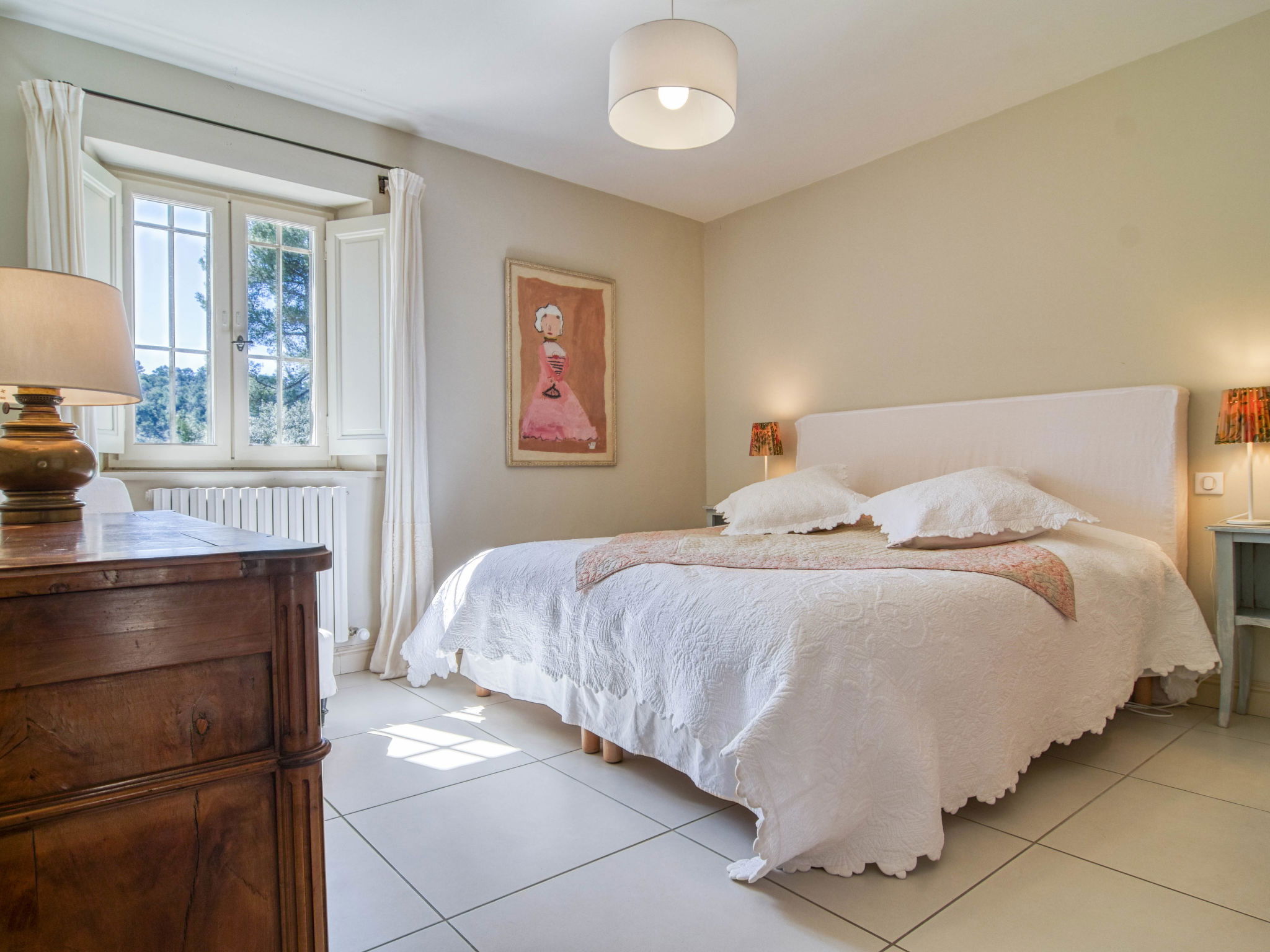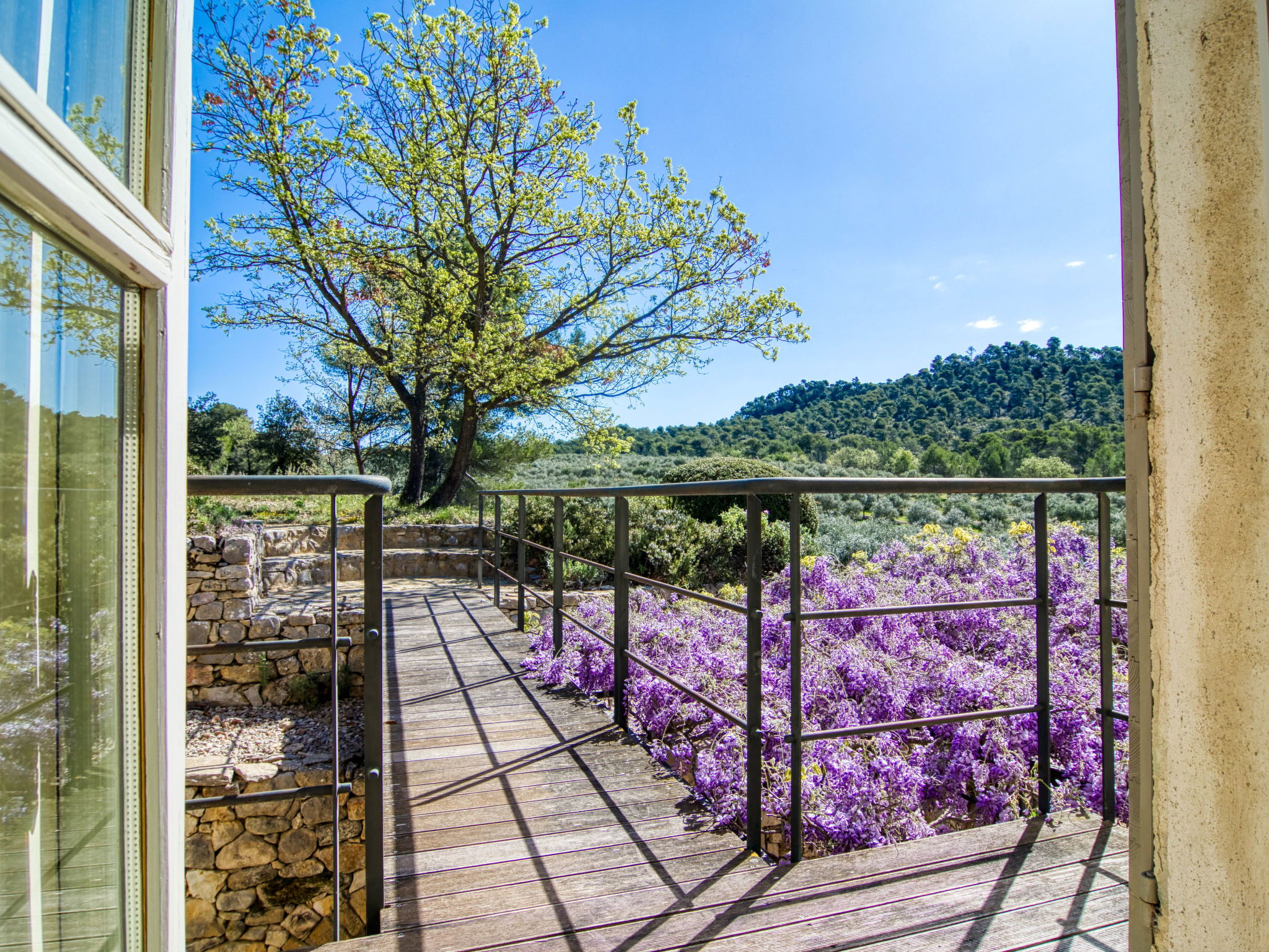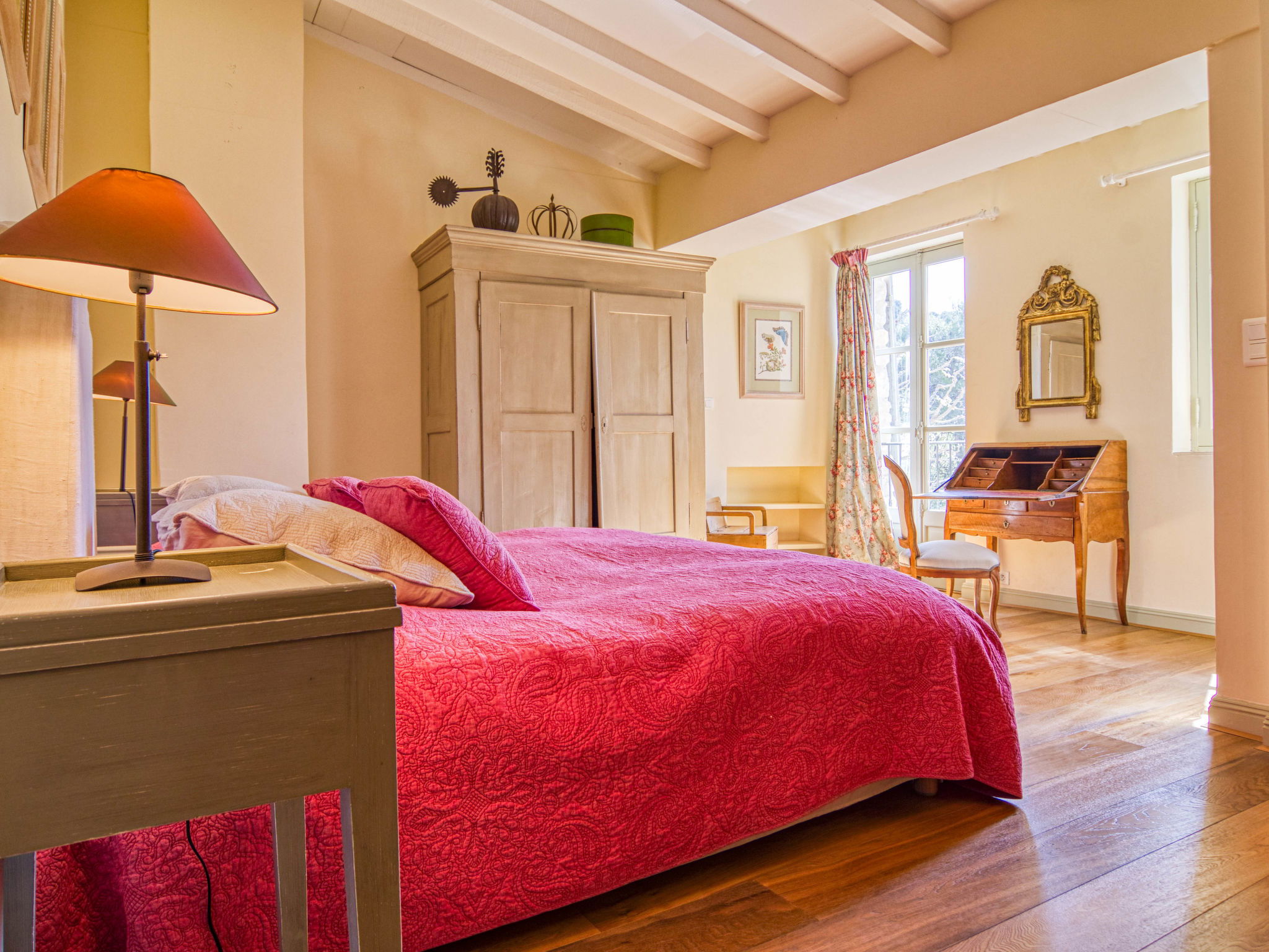 Located on land made up of woods, an olive grove and a lavender field. Available: plancha. Petanque pitch in front of the house. Pond at 150m with pontoon. two fountains on the property. On request, in addition, possibility of securing the services of a caterer or cook. Very beautiful house 2 storeys, surrounded by trees. Outside the resort, in a secluded, quiet, elevated position. Private: park 32 ha with trees, pond, swimming pool (12 x 6 m, depth 100 - 180 cm, seasonal availability: 01.May. - 30.Sep.) with internal staircase and shutter cover. Boules, terrace (20 m2), garden furniture, bathing jetty, pool maintenance by the owner/gardener. In the house: central heating system. Linen change (suppl. charge extra). Towel change (suppl. charge extra). Room cleaning daily on request (extra). Cook on request (extra). 1.7 km long bumpy motor access (via unmade road). Shop 5 km, restaurant 5 km, bus stop "Régusse" 8.5 km. Golf course (18 hole) 15 km, tennis 10 km. Please note: car recommended.