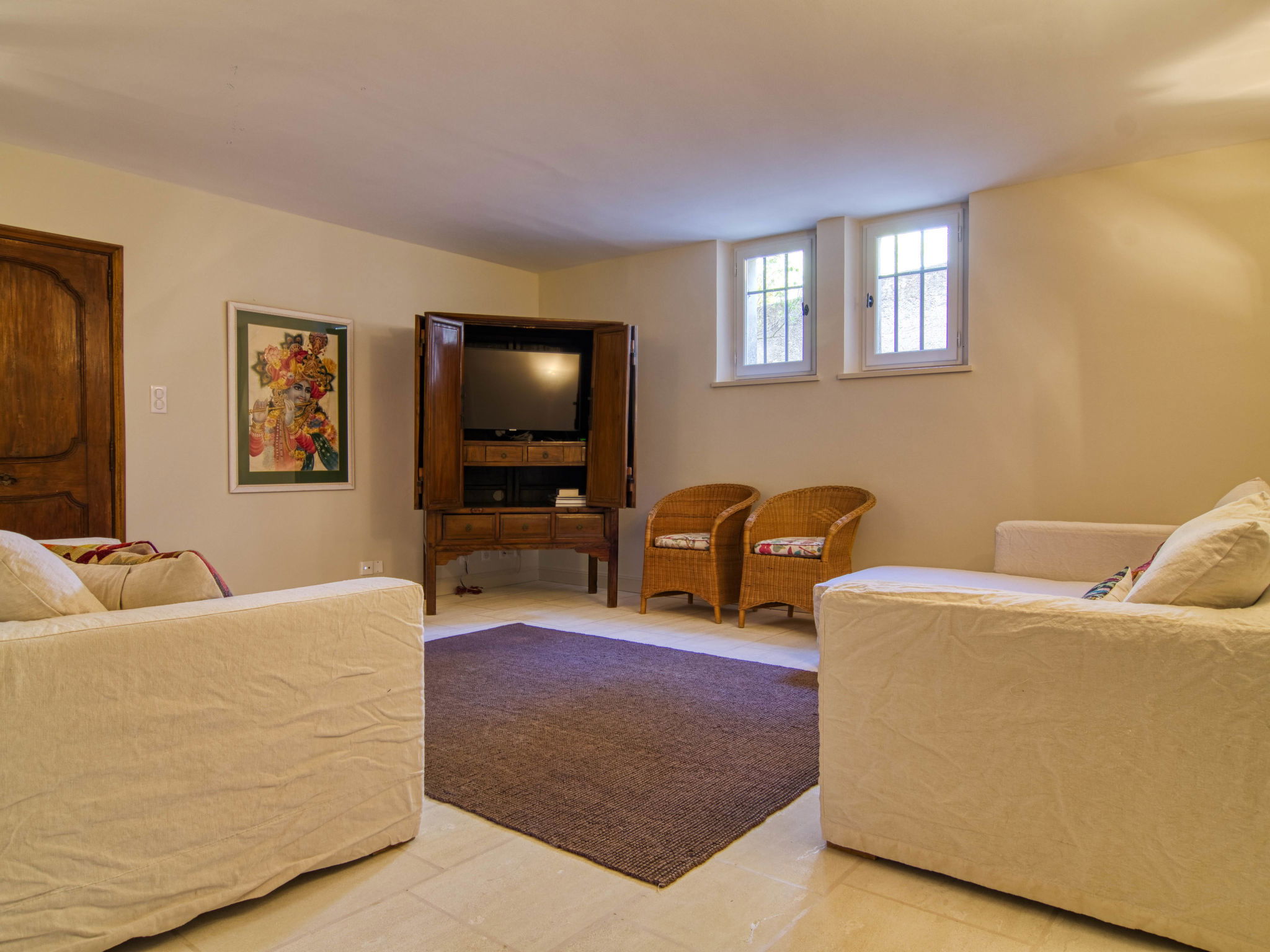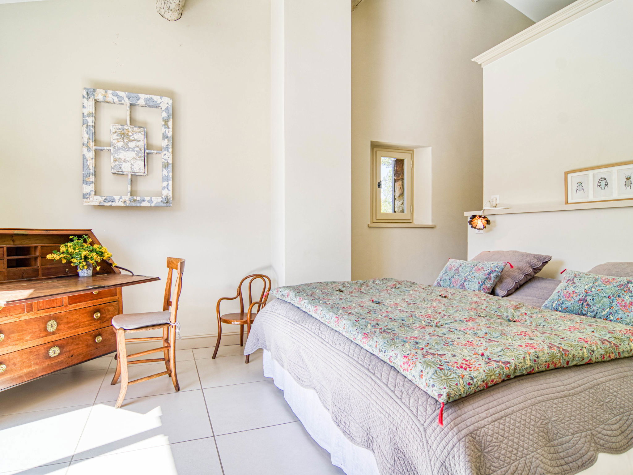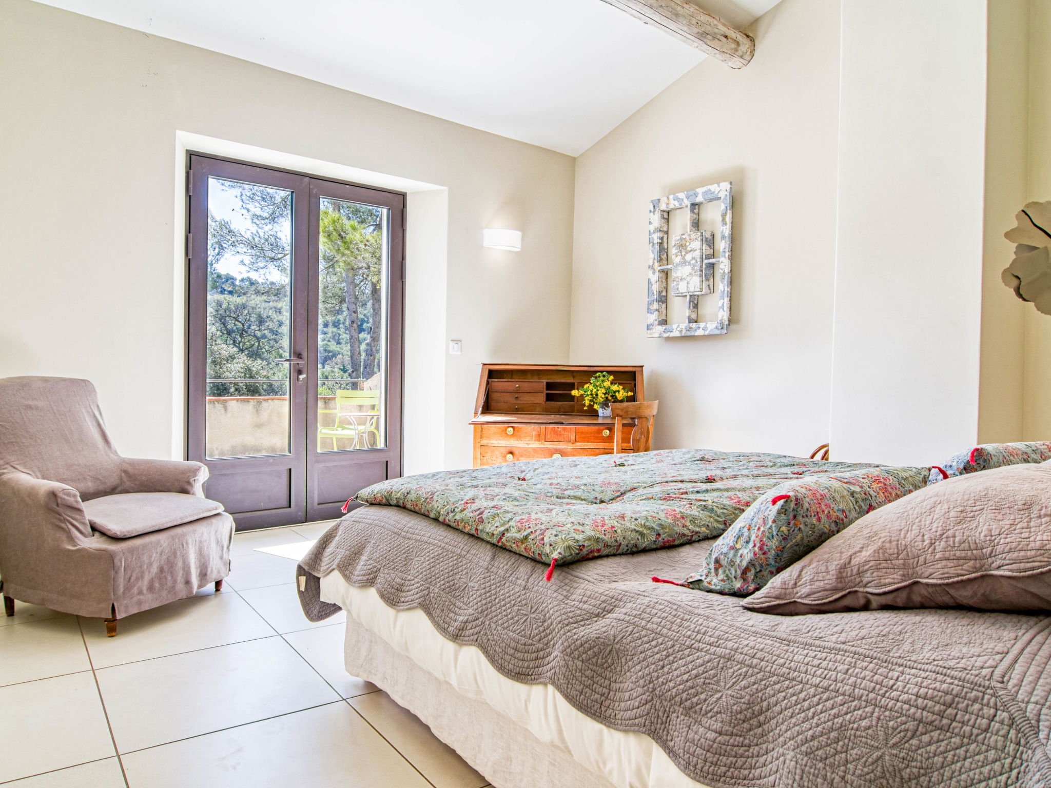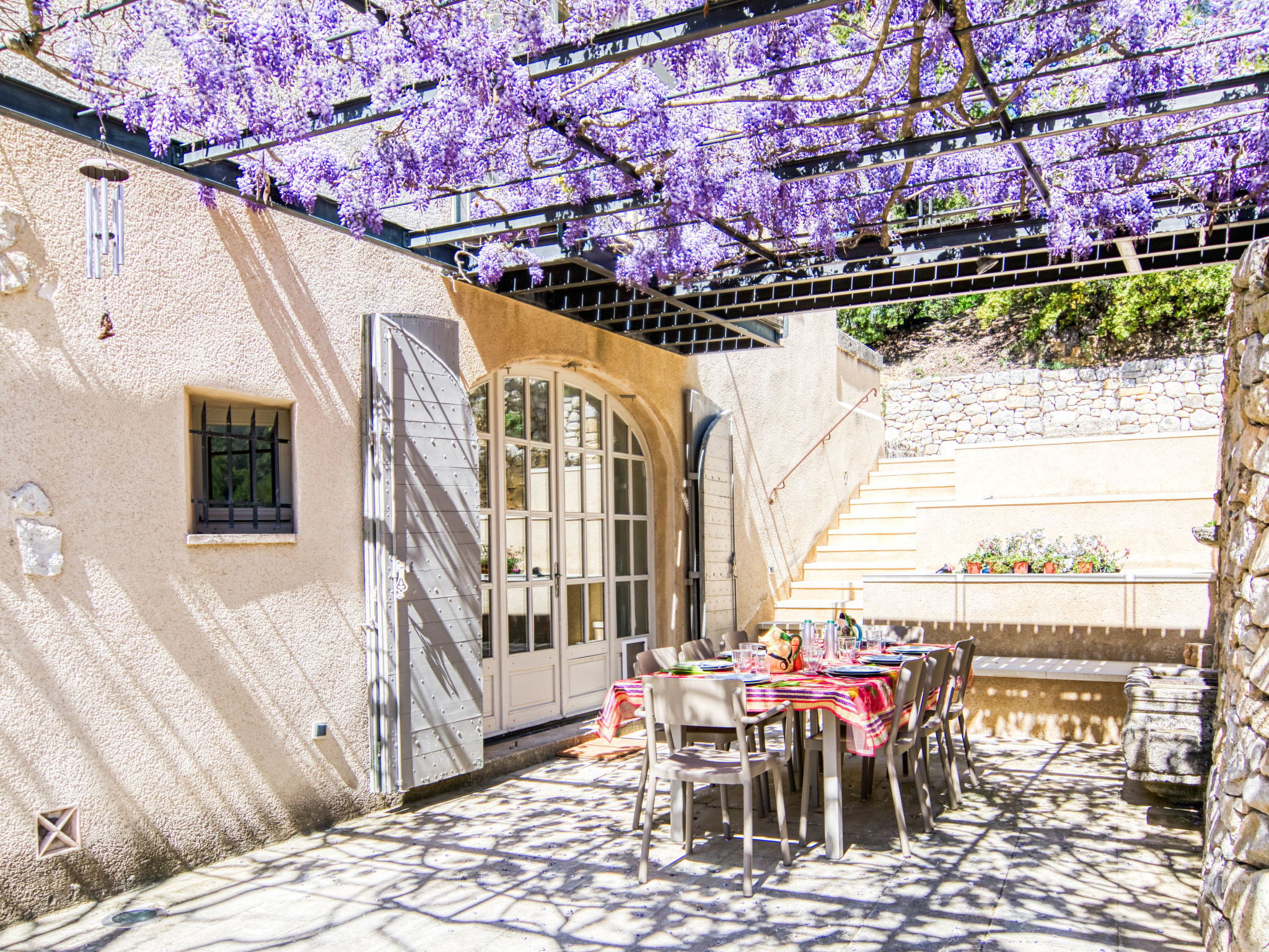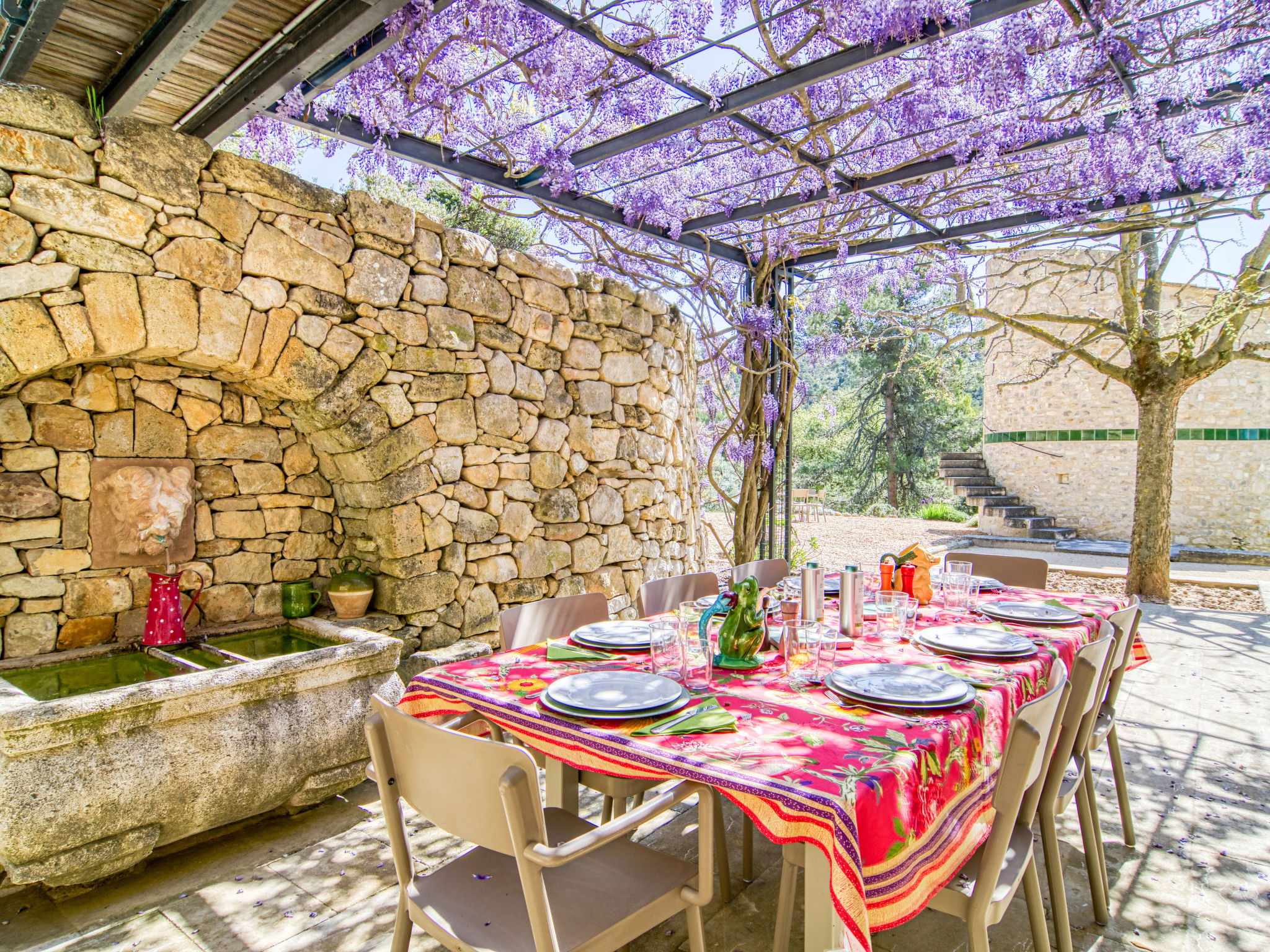 Located on land made up of woods, an olive grove and a lavender field. Available: plancha. Petanque pitch in front of the house. Pond at 150m with pontoon. two fountains on the property. On request, in addition, possibility of securing the services of a caterer or cook. Very beautiful house 2 storeys, surrounded by trees. Outside the resort, in a secluded, quiet, elevated position. Private: park 32 ha with trees, pond, swimming pool (12 x 6 m, depth 100 - 180 cm, seasonal availability: 01.May. - 30.Sep.) with internal staircase and shutter cover. Boules, terrace (20 m2), garden furniture, bathing jetty, pool maintenance by the owner/gardener. In the house: central heating system. Linen change (suppl. charge extra). Towel change (suppl. charge extra). Room cleaning daily on request (extra). Cook on request (extra). 1.7 km long bumpy motor access (via unmade road). Shop 5 km, restaurant 5 km, bus stop "Régusse" 8.5 km. Golf course (18 hole) 15 km, tennis 10 km. Please note: car recommended.