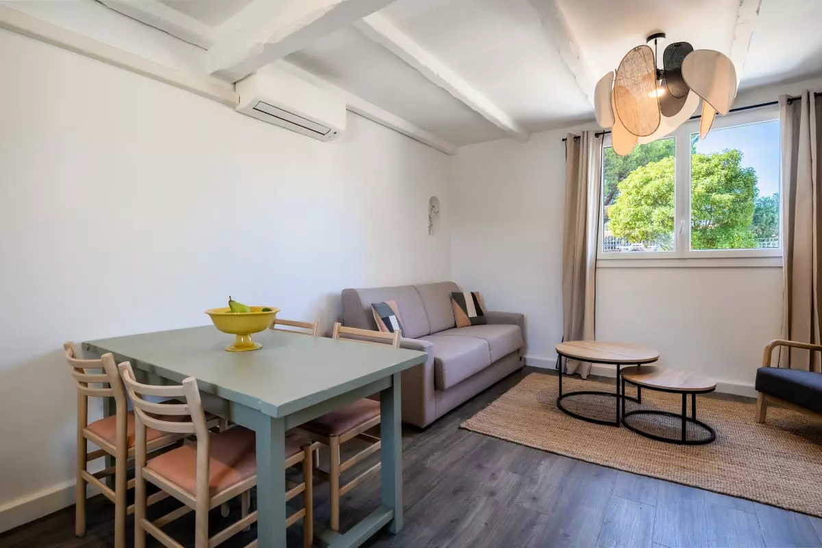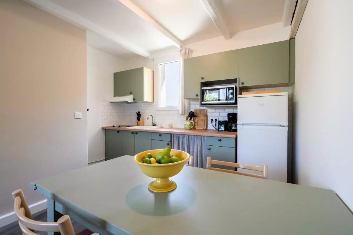 For your comfort, air conditioning is available to keep you cool on hot summer days. The fully equipped kitchen allows you to prepare delicious meals with fresh produce from the nearby Provençal market.