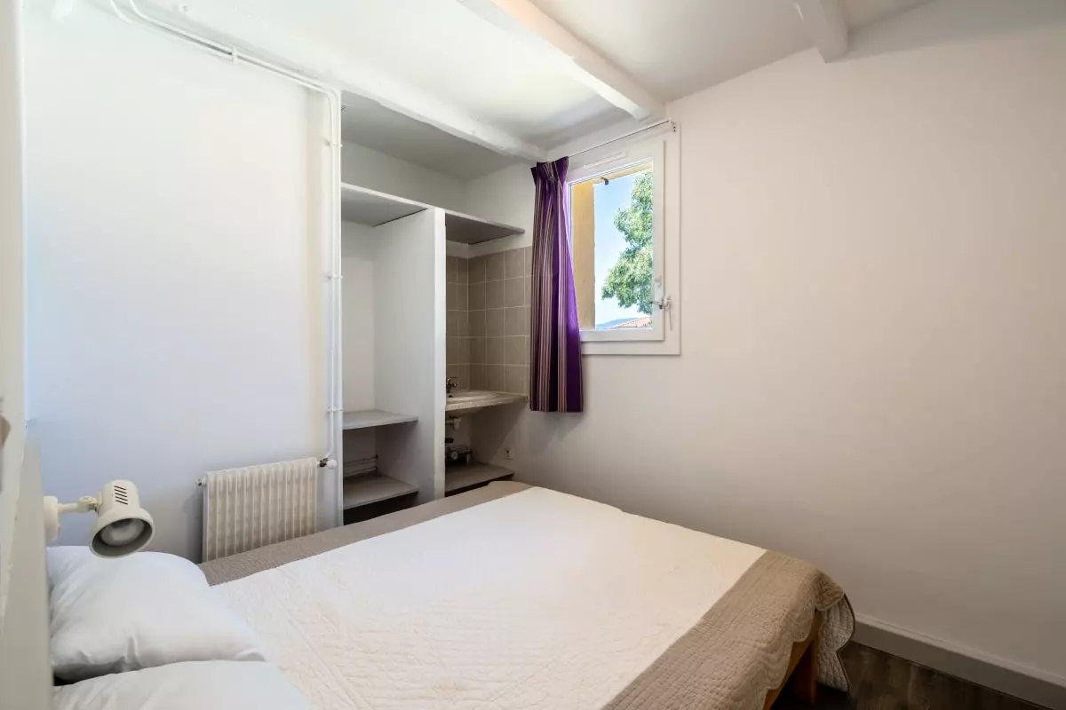 This haven of peace includes two bedrooms, one with a 160cm double bed and the other with two single beds, comfortably accommodating up to four people, perfect for families or friends travelling together.