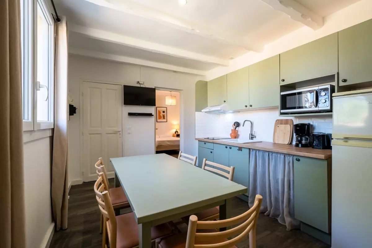 For your comfort, air conditioning is available to keep you cool during hot summer days. The fully equipped kitchen allows you to prepare delicious meals with fresh produce from the nearby Provençal market.