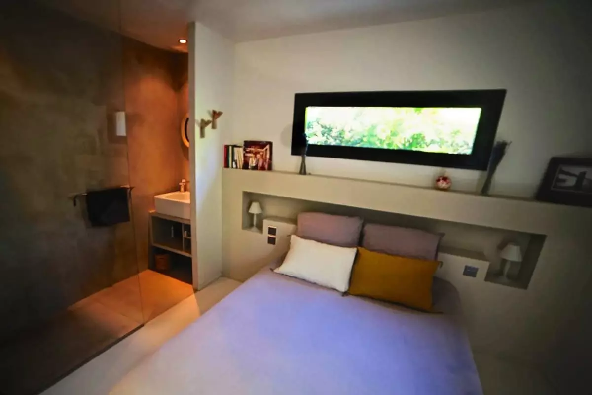 The 175m² villa consists of two buildings: a kitchen, a living room, a library, a laundry room, three bedrooms with bathrooms, and a wooden extension with a fourth bedroom. Each bedroom has private access to the exterior. Free Wi-Fi, air conditioning, and a fully equipped kitchen ensure a worry-free stay. The 12m x 3.5m heated pool is secured by an alarm.