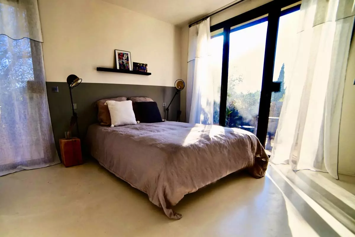 Just 10 minutes from Lourmarin, this 175 m² architect-designed house offers four bedrooms with private bathrooms, spacious living areas, and a peaceful atmosphere. Air conditioning is available.