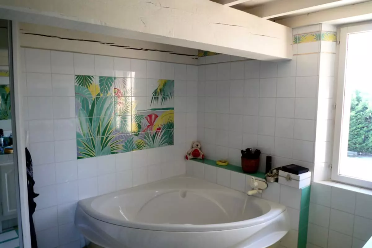 It has several elegant shower rooms, complemented by a bathroom with a bathtub, ensuring comfort and privacy for all.