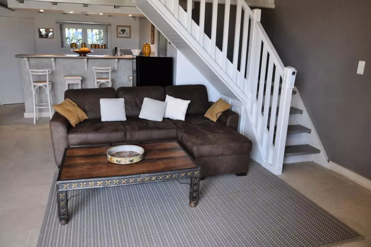 The spacious, light-filled living areas combine a lounge, dining room, and a fully equipped kitchen, naturally inviting shared moments. A separate laundry room with a washing machine and dryer completes the amenities for a truly relaxing stay.