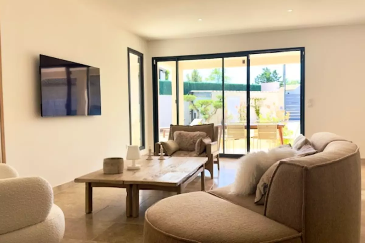 Nestled in a peaceful residential area of L'Isle-sur-la-Sorgue, this beautiful 140 m² single-story house welcomes you into a bright and elegant atmosphere, designed for a relaxing getaway.
