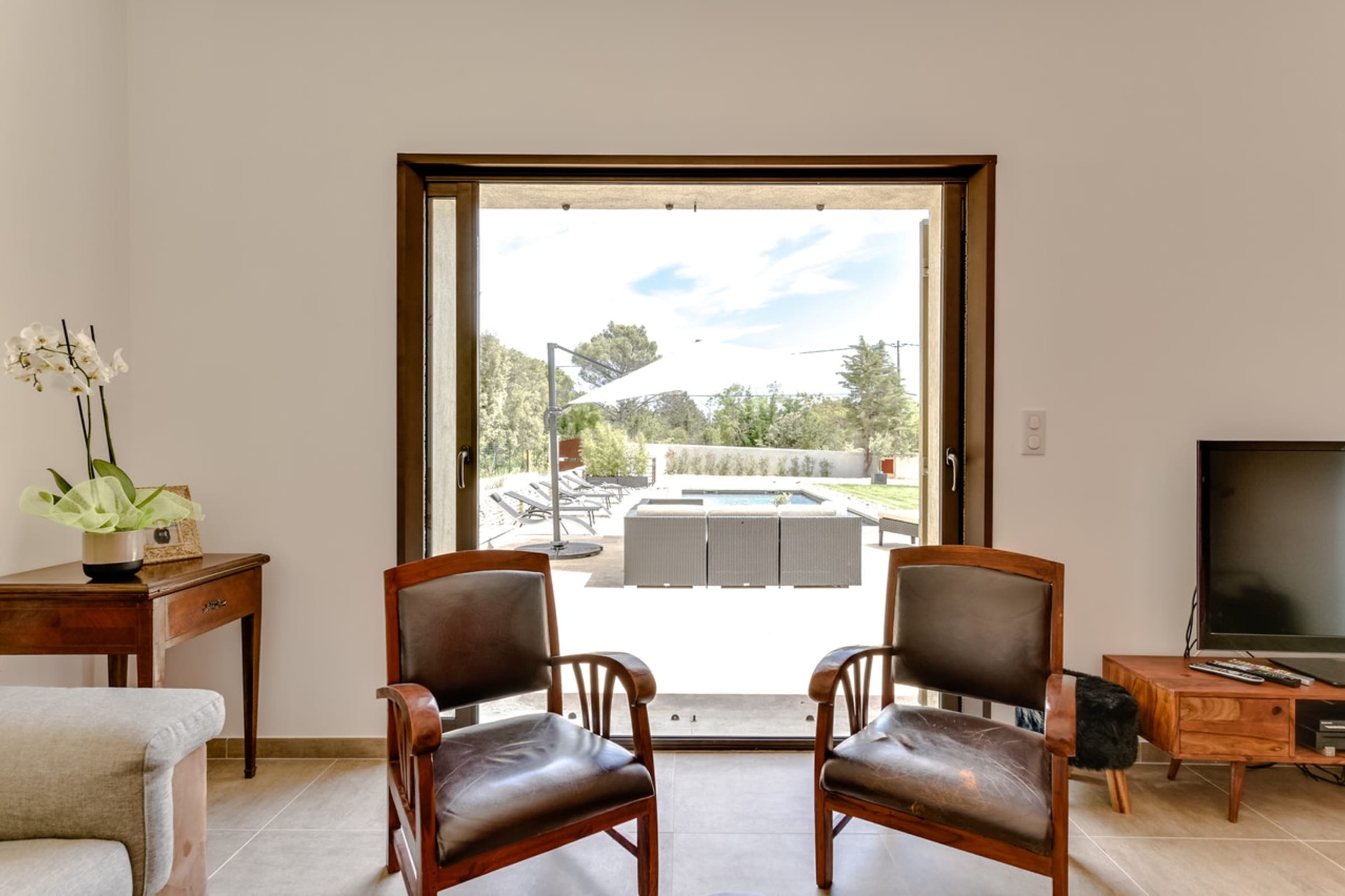 * Living room opening onto the terrace. satellite channel TV