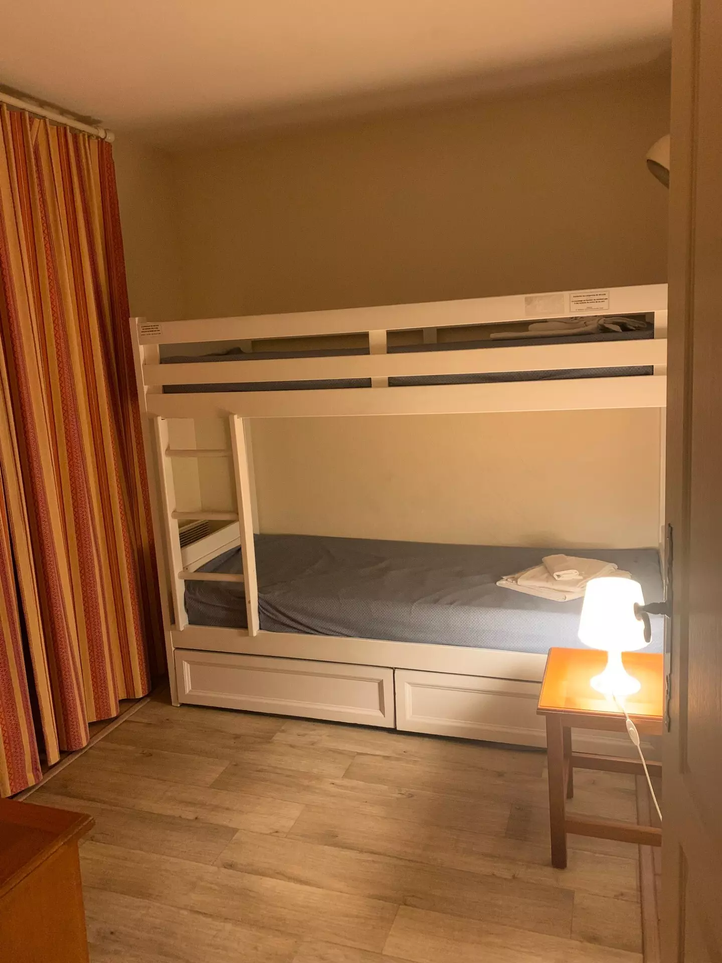 Living room composition: 2 sofa beds, 1 with a pull-out bed (recommended for children) and two armchairs. Dining area: a wooden table with 7 chairs and 1 stool.