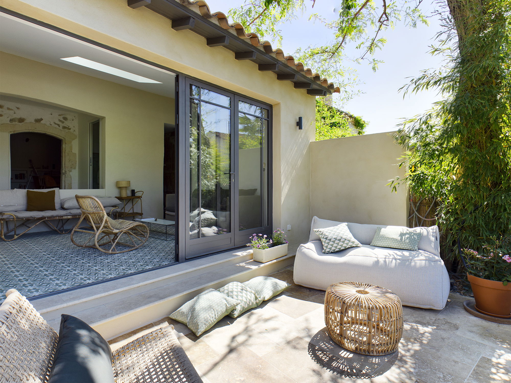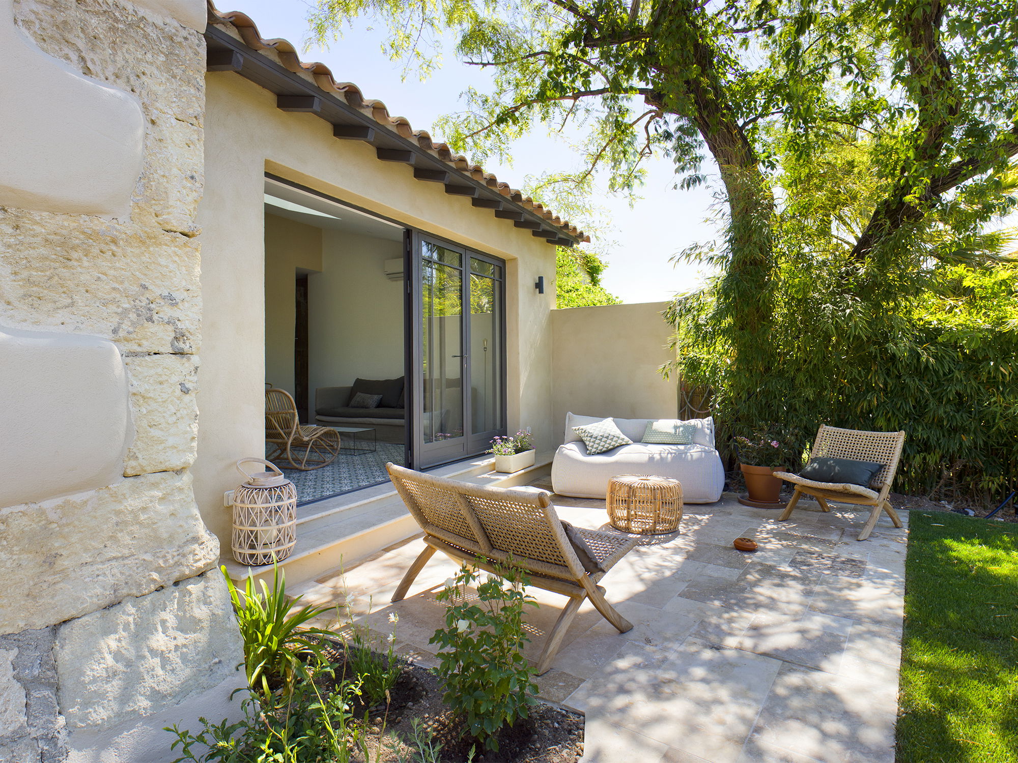 Superb Mas from the 1700s completely renovated. It will take you only 7 minutes on foot to reach the village from the Mas which is located in a quiet area of old Maussane, just a few minutes from the Manville golf course and pleasant walks such as the hulking course or the promontory overlooking the valley of the leases . This farmhouse has kept its authenticity with its magnificent stone vaulted living room, but remains functional with its completely renovated kitchen with a superb central island. The 220 m² property is configured in two houses, ideal for a family or couples of friends, the Mas which is composed of a large living room with an open kitchen and a dining room, upstairs 1 master bedroom of 60 m² with a shower room as well as a large bedroom of 30 m² with its own shower room. The mazet located below the garden has 2 other large bedrooms and a private terrace. The garden has also been refurbished with a summer kitchen, a dining area for lunch/dinner under the large bicentennial plane tree mulberry tree, the heated and secure swimming pool will give your holiday a plus even in the off season! Possibility to rent in 2 bedroom format in off season only contact us for prices. Exit cleaning and sheets included - A lump sum may be deducted from the security deposit if the garbage cans have not been taken out by the tenant, if the house is returned in a deplorable state compared to the inventory of fixtures. entry and if any laundry is missing. Supplement of €100 for entry/exit on Sunday Tourist taxes not included in the price (€5.76 x number of adults x number of nights); Deposit: €4,000 to be paid by credit card imprint or bank transfer only, before entering the premises.