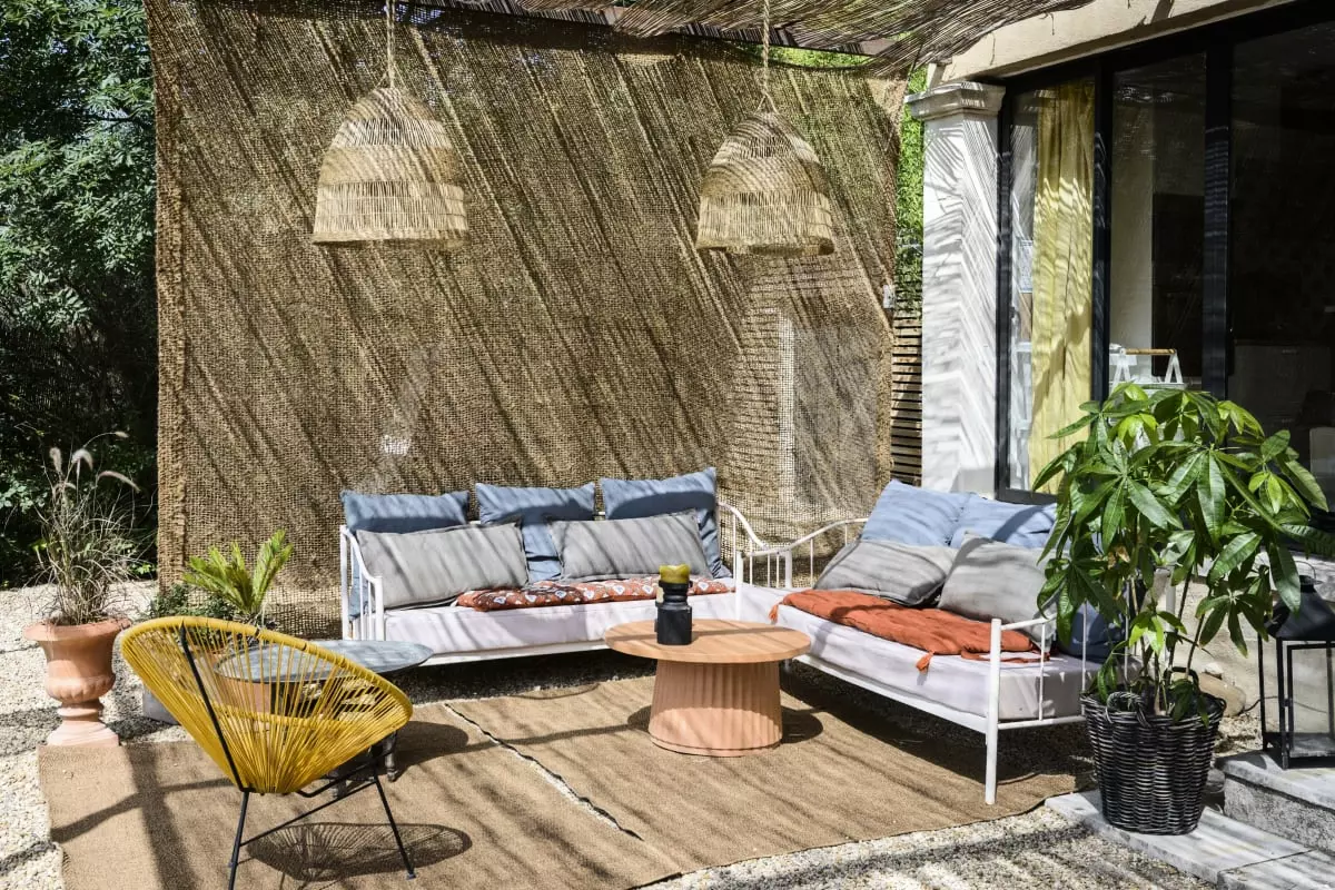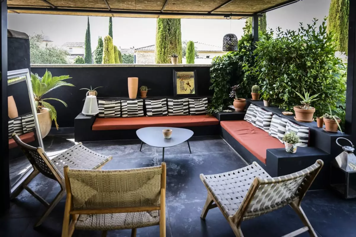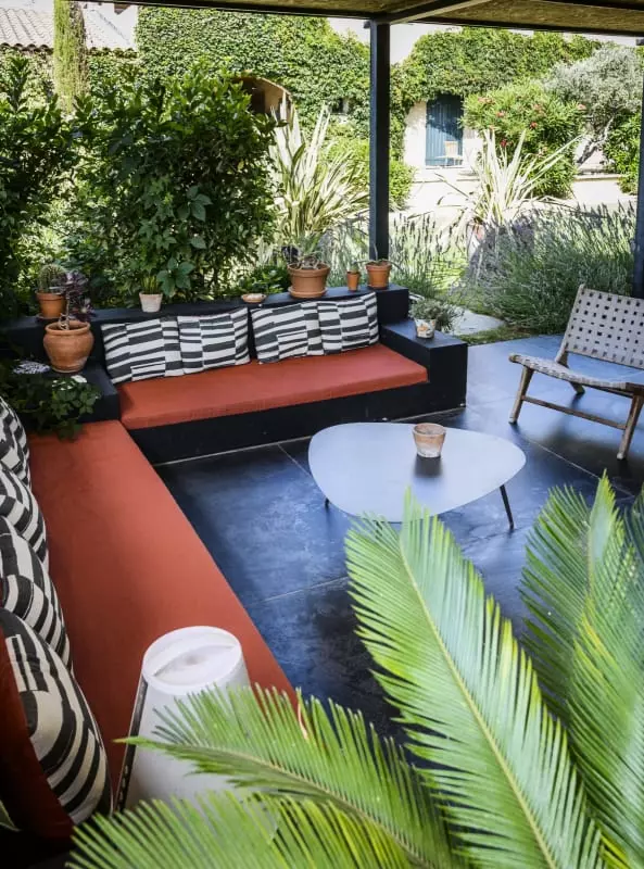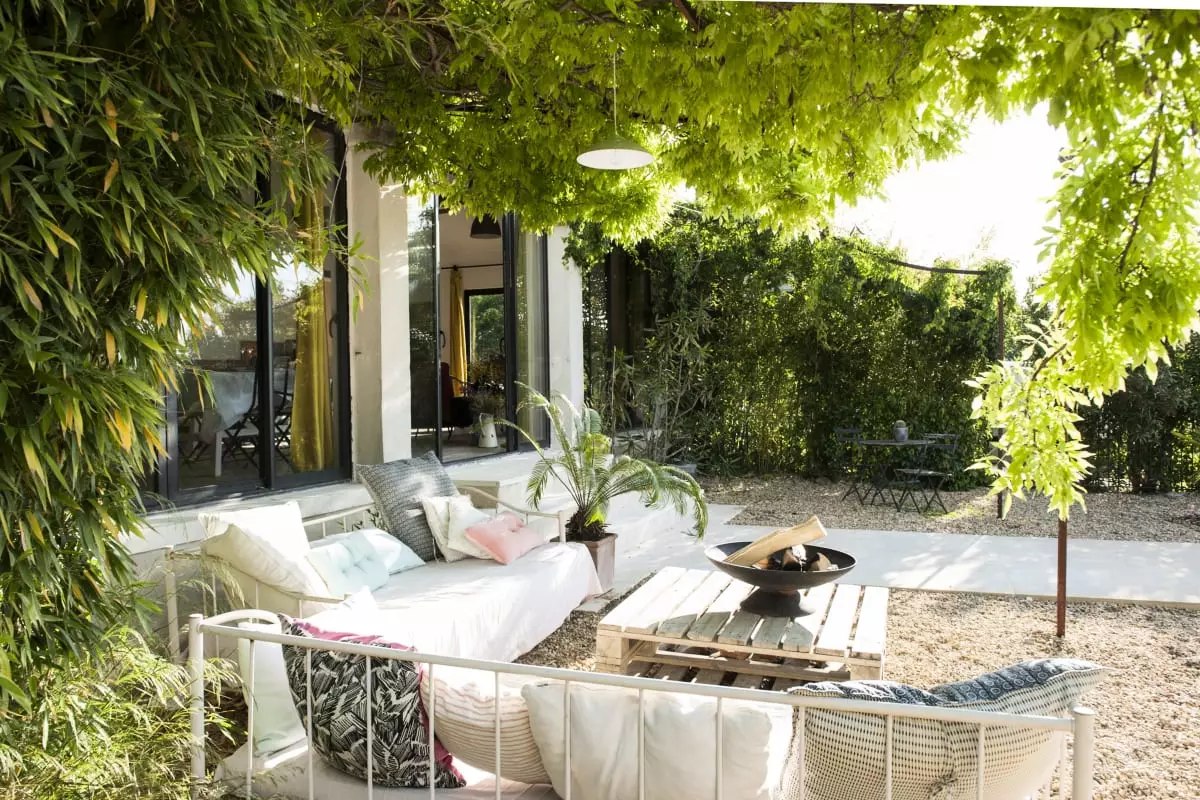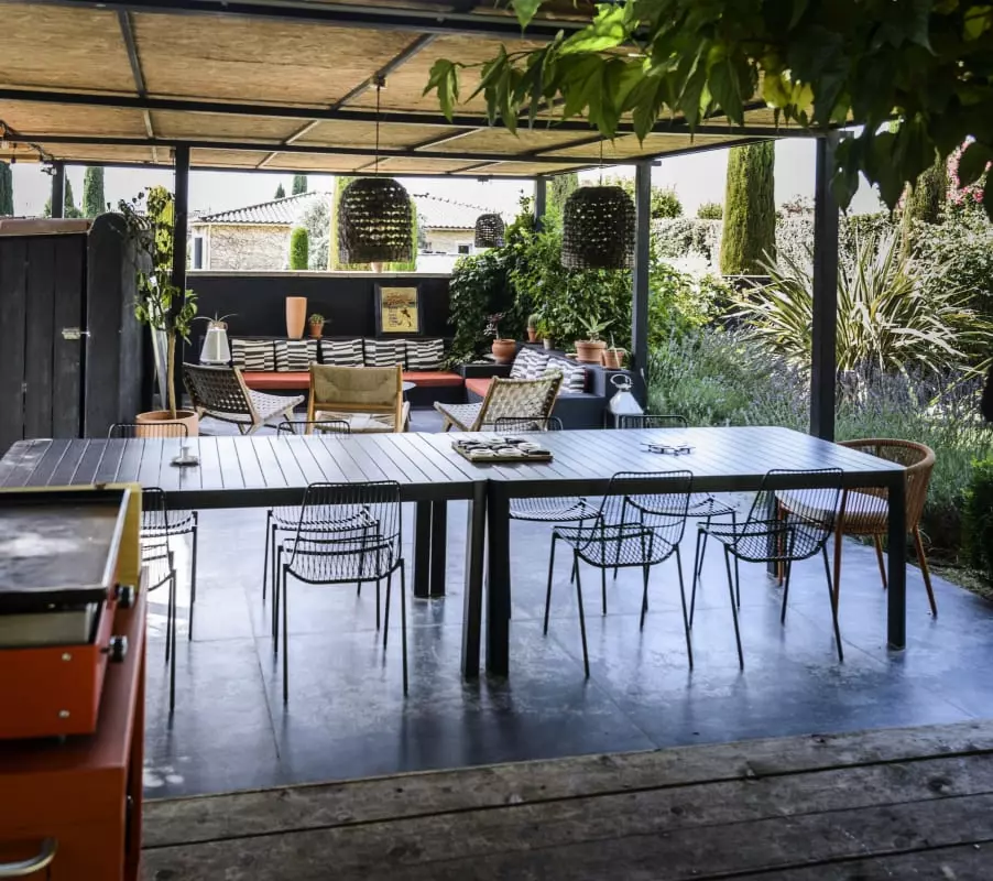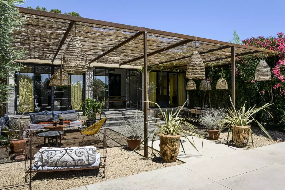 A shaded garden, a pergola with Moroccan lounge area and a gas griddle are perfect for convivial meals.