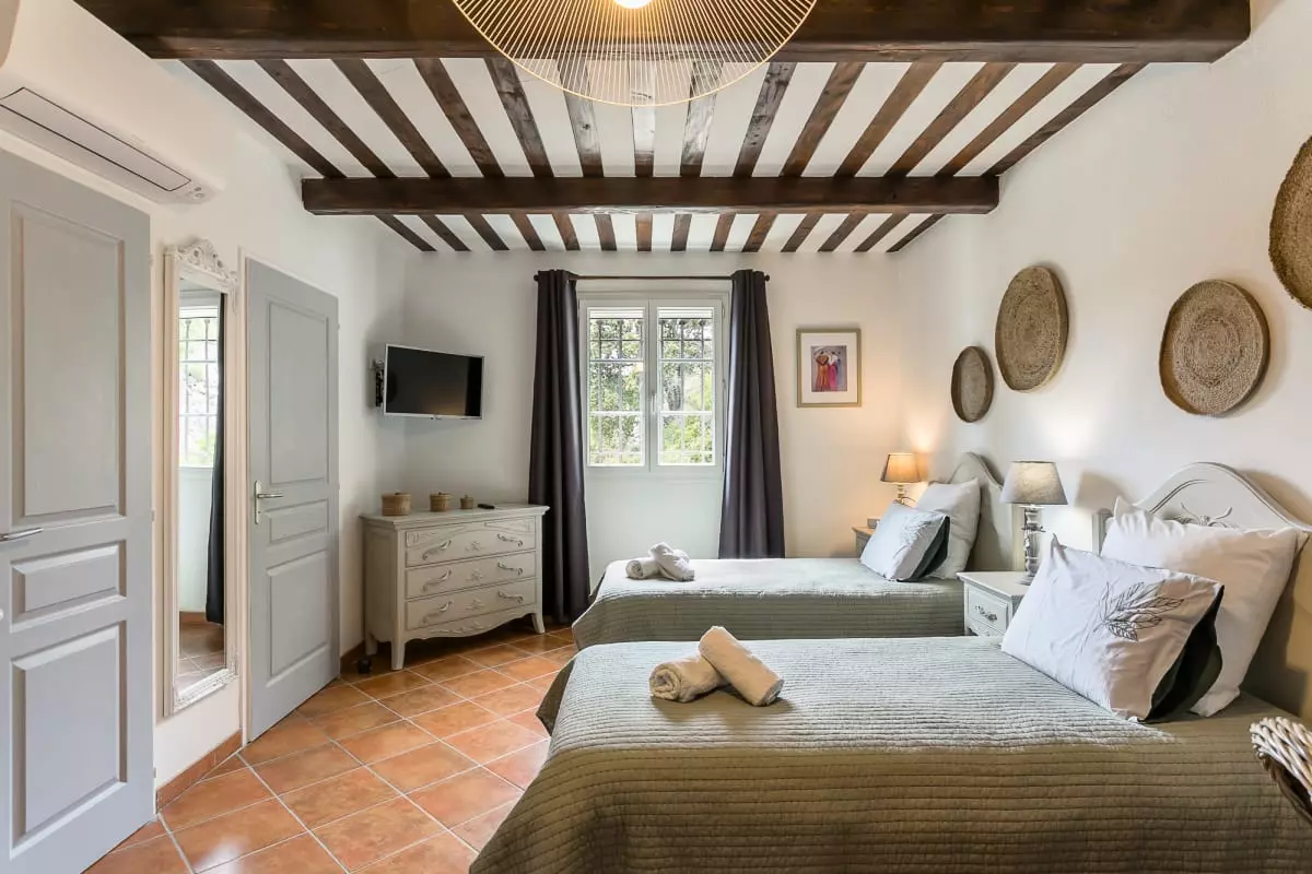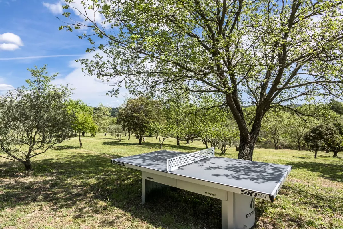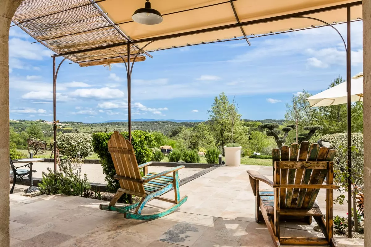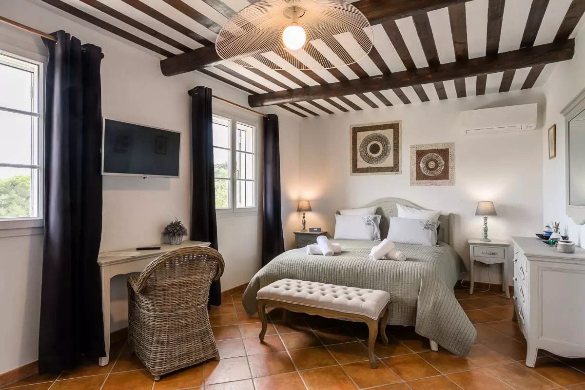 This charming country house combines authenticity and modern comfort: 5 air-conditioned suites, heated swimming pool, gym, large garden with olive trees, pétanque and views of the hills.