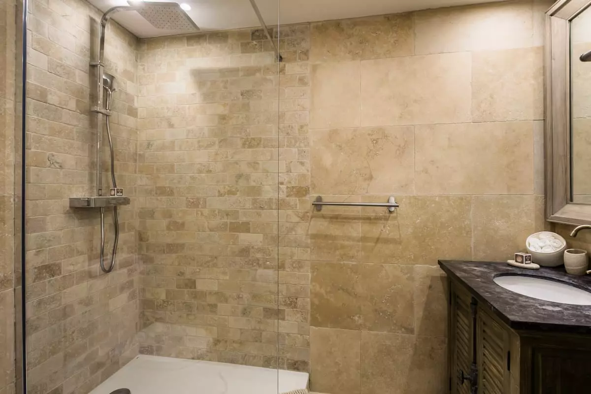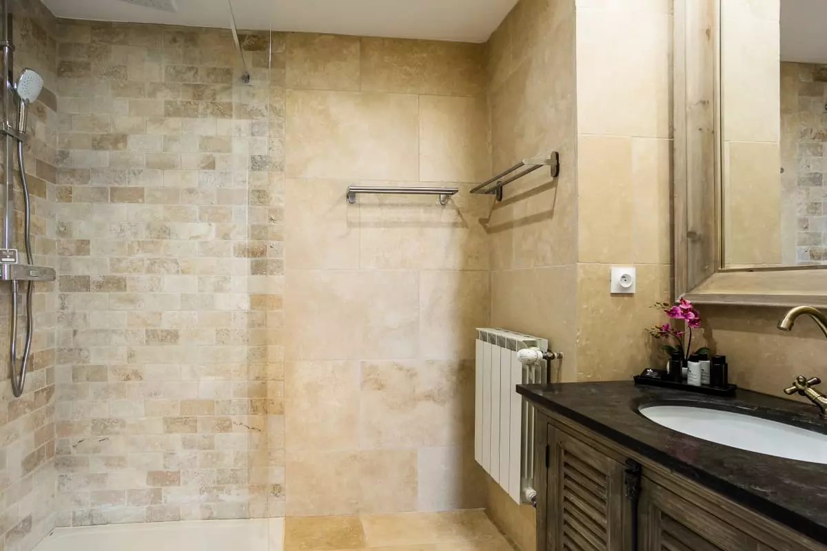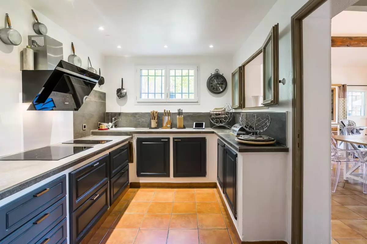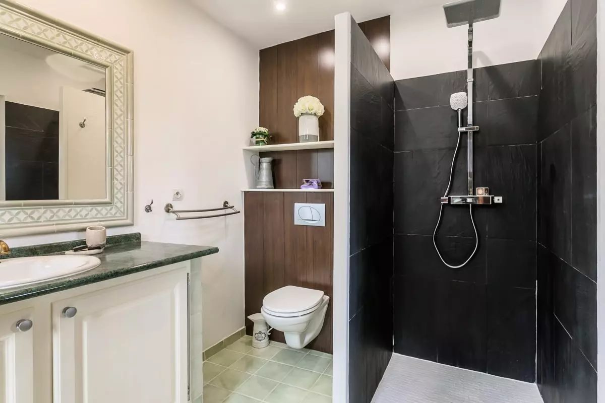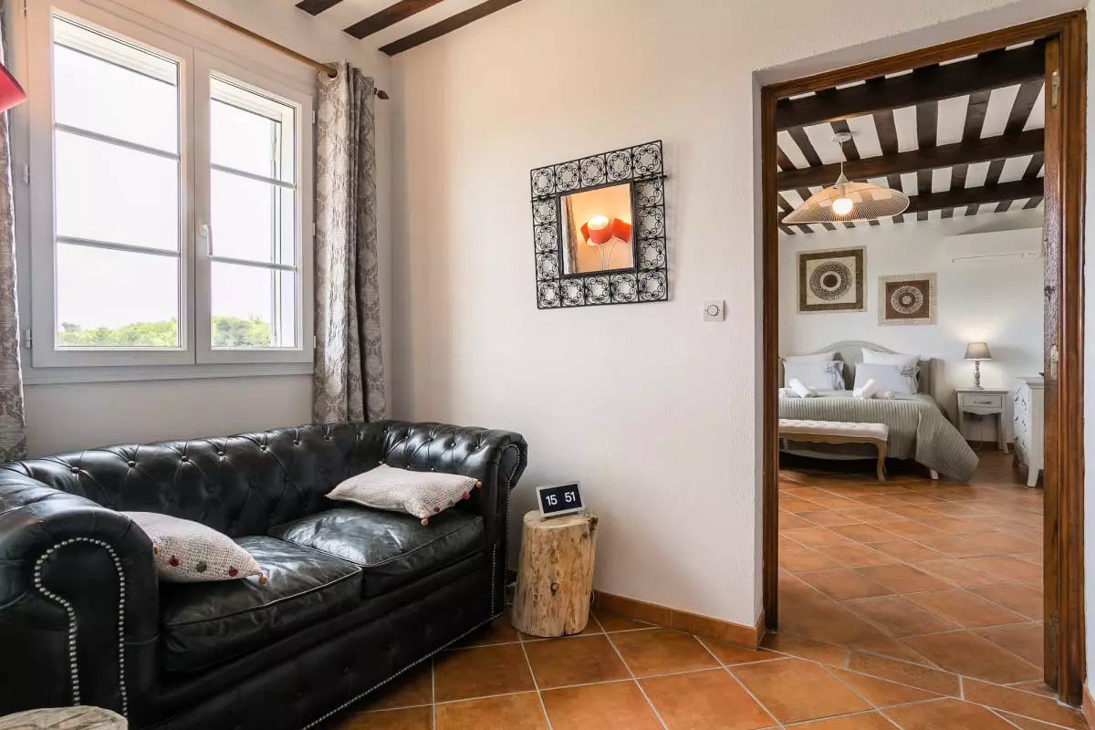 This charming country house combines authenticity and modern comfort: 5 air-conditioned suites, heated swimming pool, gym, large garden with olive trees, pétanque and views of the hills.