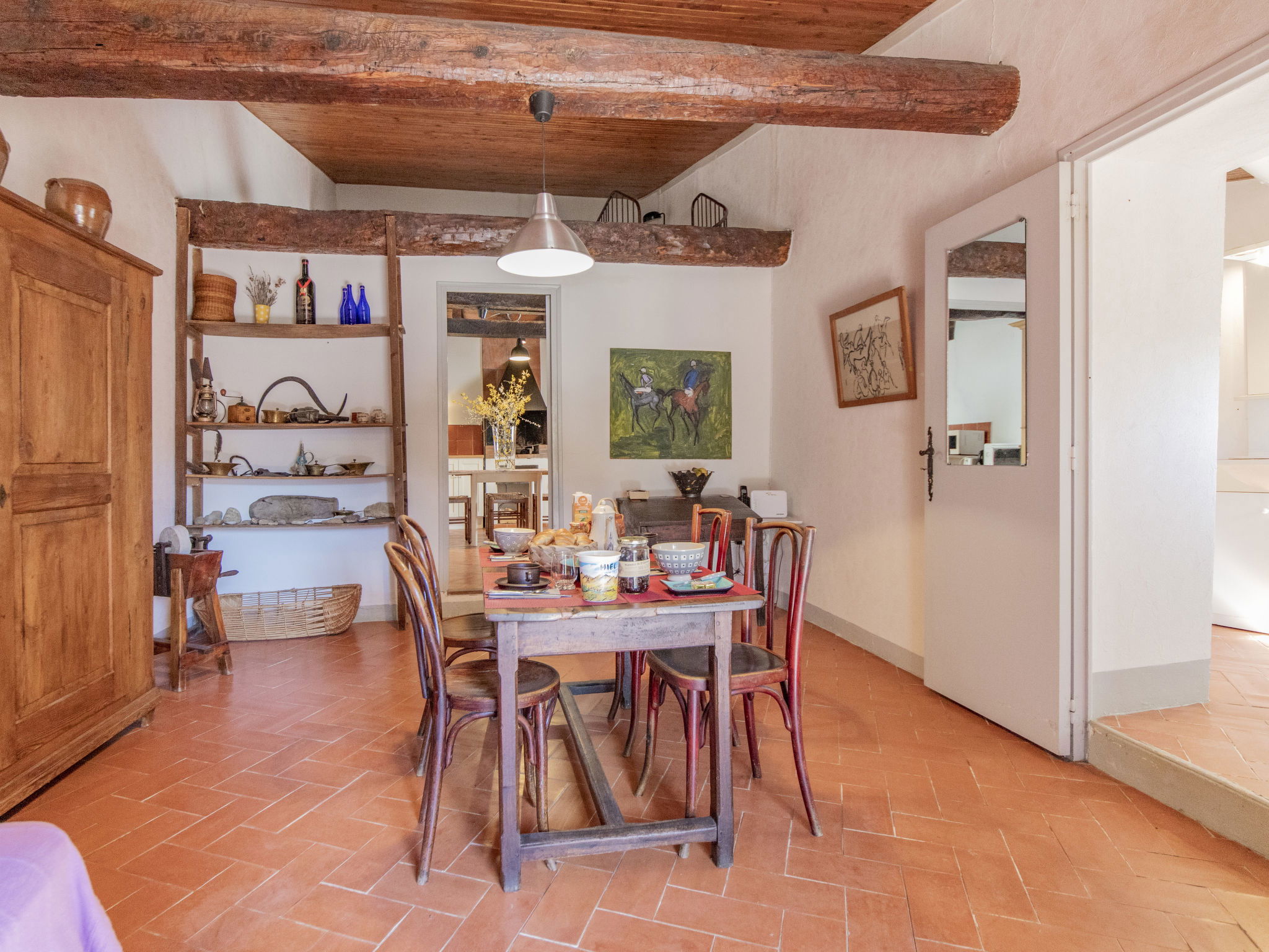 Small, cosy, rustic large working farm "Les Hauts Bronzets", 650 m a.s.l., surrounded by trees and fields. 3 apartments in the property. 12 km from the centre of Oraison, 25 km from the centre of Forcalquier, 90 km from the centre of Aix-en-Provence, in a secluded, elevated position on a slope, in the countryside. For shared use: natural state property 180 ha with meadow. In the house: washing machine (for shared use). Storeroom available. Bumpy motor access (900 m via unmade road). Stepped path (10 steps) to the house. Parking on the premises. Shop 3 km, supermarket 12 km, restaurant 3 km, bus stop 6 km, outdoor swimming pool 12 km. Golf course (9 hole) 15 km, tennis 12 km, cycle lane 12 km. Nearby attractions: Moustiers Sainte Marie, Gorges du Verdon, Abbaye de Notre Dame de Ganagobie, Les penitentes Les Mées, Musée et Jardins de Salagon. Well-known lakes can easily be reached: Lac des Buissonades 16 km, Lac de Sainte Croix 47 km. Please note: Additional accommodations can be booked.