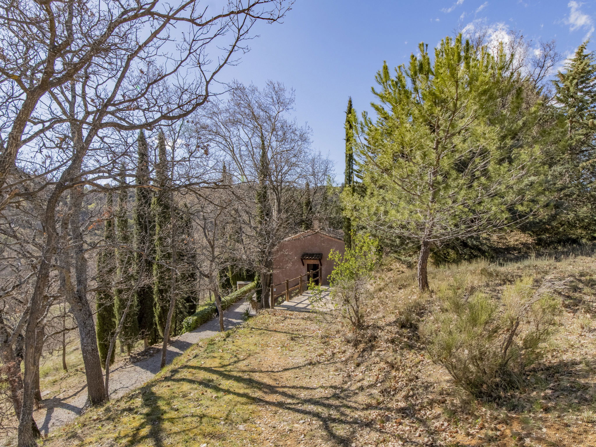 Small, cosy, rustic large working farm "Les Hauts Bronzets", 650 m a.s.l., surrounded by trees and fields. 3 apartments in the property. 12 km from the centre of Oraison, 25 km from the centre of Forcalquier, 90 km from the centre of Aix-en-Provence, in a secluded, elevated position on a slope, in the countryside. For shared use: natural state property 180 ha with meadow. In the house: washing machine (for shared use). Storeroom available. Bumpy motor access (900 m via unmade road). Stepped path (10 steps) to the house. Parking on the premises. Shop 3 km, supermarket 12 km, restaurant 3 km, bus stop 6 km, outdoor swimming pool 12 km. Golf course (9 hole) 15 km, tennis 12 km, cycle lane 12 km. Nearby attractions: Moustiers Sainte Marie, Gorges du Verdon, Abbaye de Notre Dame de Ganagobie, Les penitentes Les Mées, Musée et Jardins de Salagon. Well-known lakes can easily be reached: Lac des Buissonades 16 km, Lac de Sainte Croix 47 km. Please note: Additional accommodations can be booked.