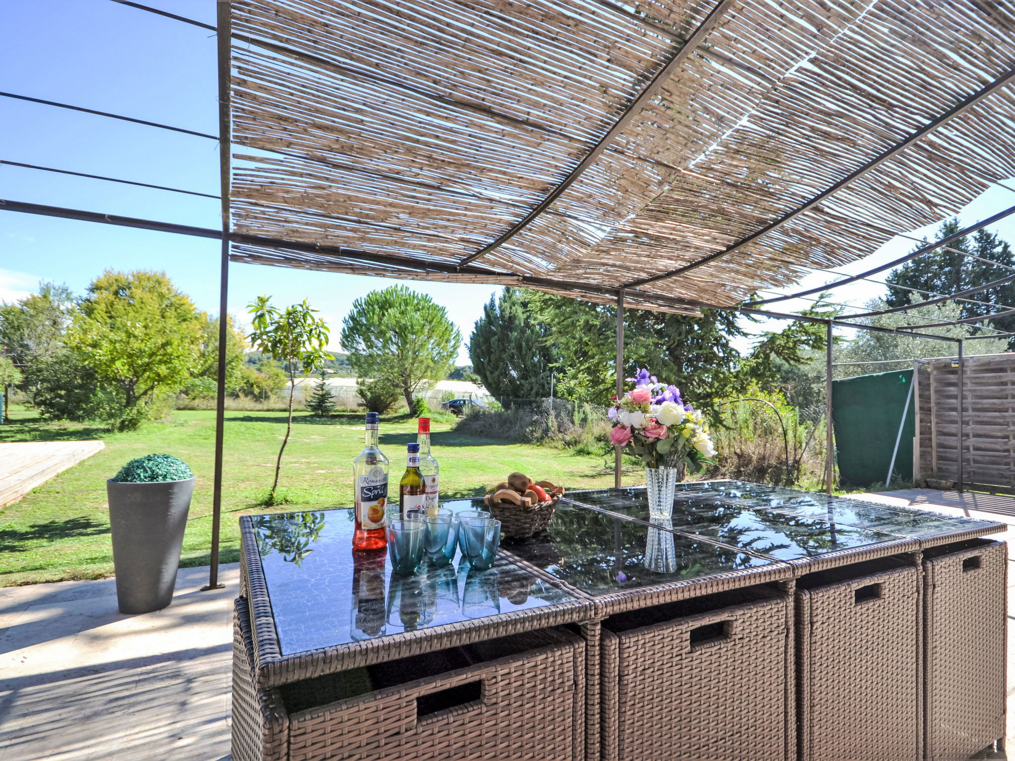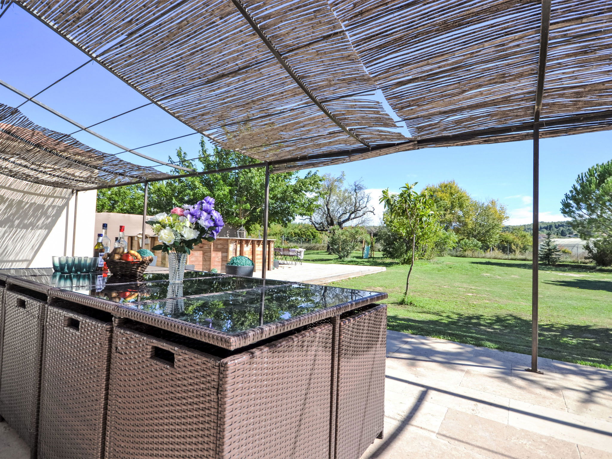 House "L' amandier". In a quiet position. Private: property 2'000 m2 (fenced), well-kept garden 2'000 m2, swimming pool (above ground) round (6 m diameter, depth 130 cm, seasonal availability: 01.May. and 30.Sep.). Children's playground (slide, swing), pool maintenance by the owner/gardener parking on the premises. Supermarket 5 km, restaurant 1 km, bakery 2 km. Nearby attractions: Carpentras 8 km, L'Isle sur la Sorgue 15 km, Gordes 22 km, Avignon 31 km. Please note: Property ref. FR8038.105.1 is situated on the same property.
