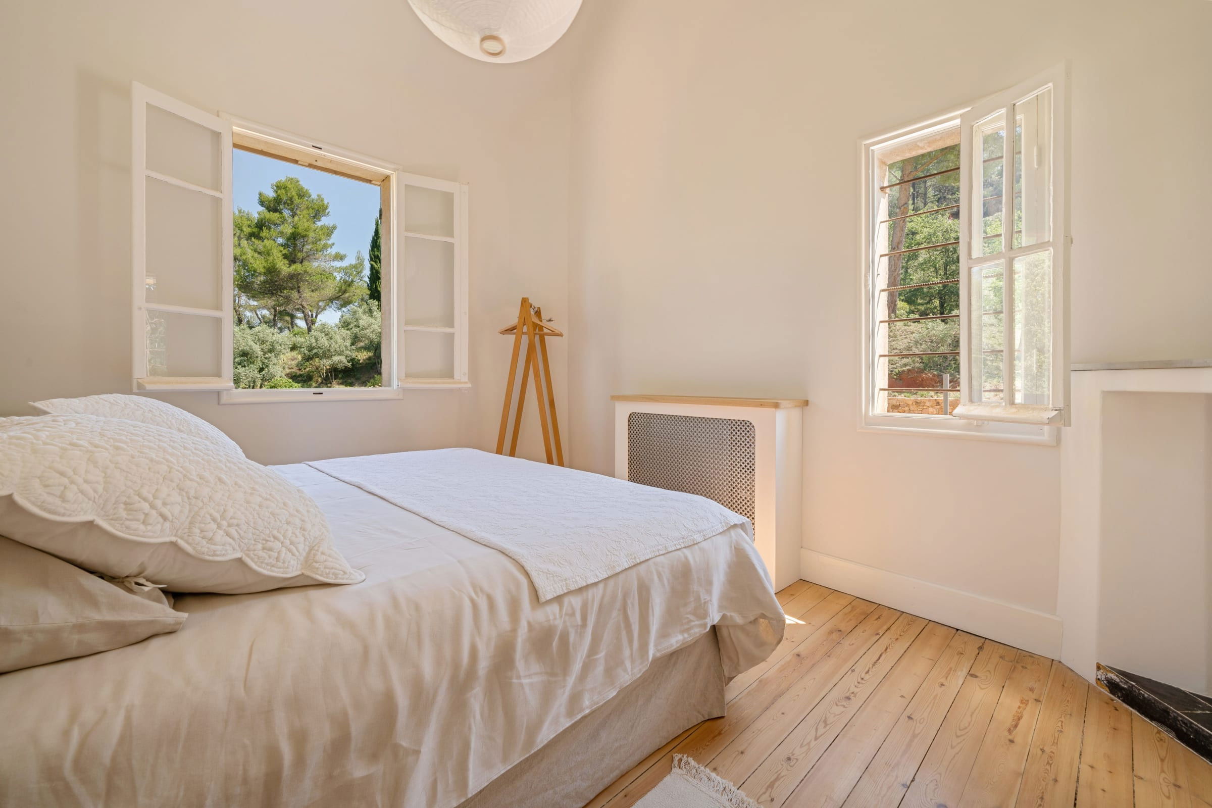 - Bedroom 1: 2 single beds 90x190cm, wardrobe, Dyson fans