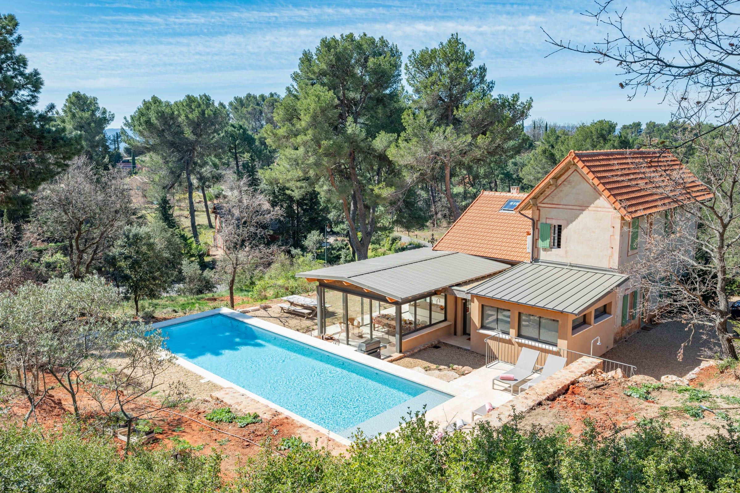 It offers a garden not overlooked, decorated with a beautiful pool. You will enjoy a wonderful view of the ochre cliffs of Roussillon! Its location is ideal. It is 7 minute-walk from the center of the village with all amenities (bakery, pharmacy, newsagent, butcher, supermarket, restaurants and cafes, shops, market, friendly evening events in summer, etc.).