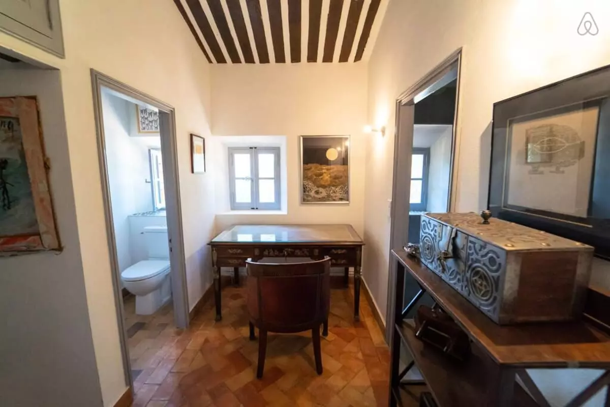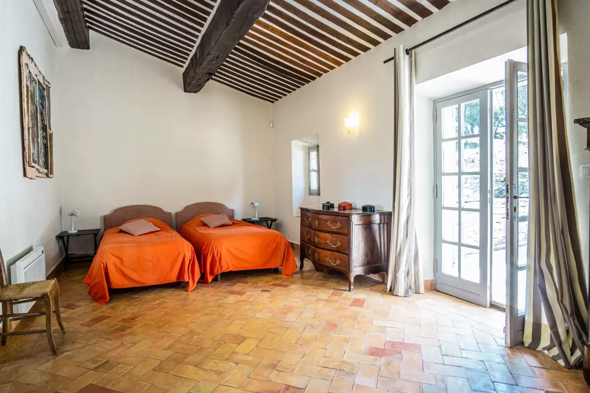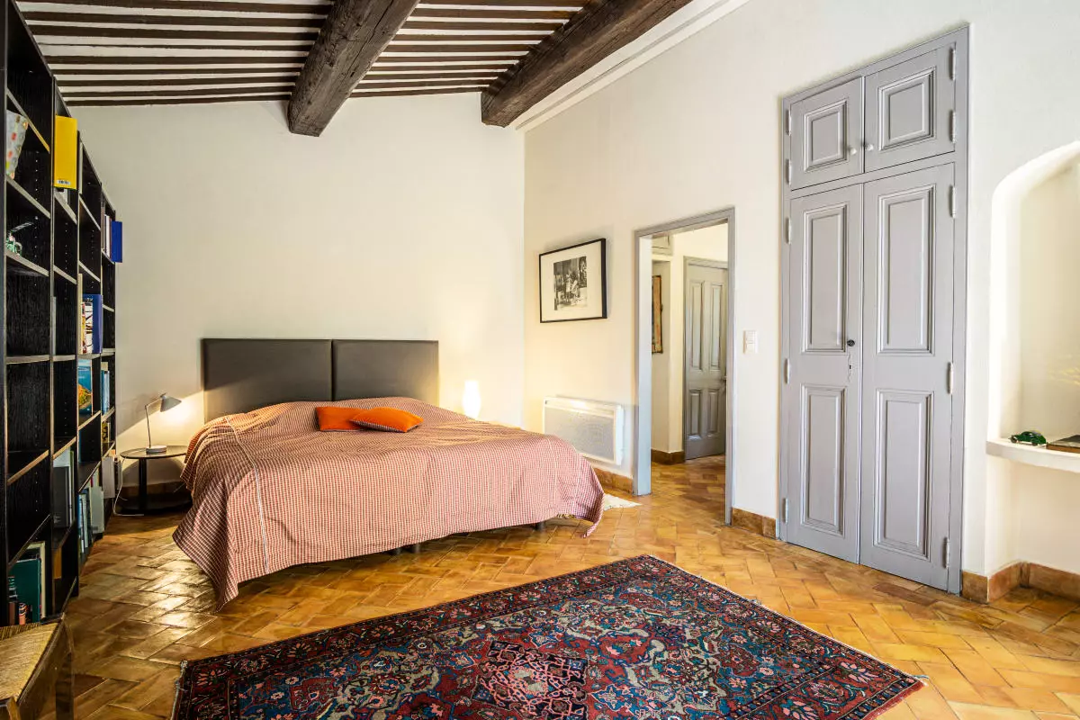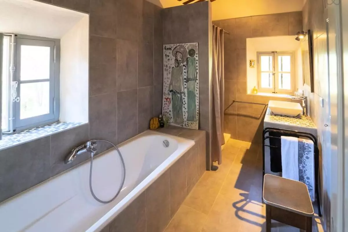 A bright, vaulted living room giving access to the heated swimming pool measuring 10 m by 4.5 m, a fully equipped kitchen, a back kitchen/laundry room, two large bedrooms upstairs with careful decoration, each with its own terrace, bathroom or shower room and separate toilet, as well as an independent bedroom on the ground floor with shower room and separate toilet, make this house a haven of peace in a remarkable listed site.