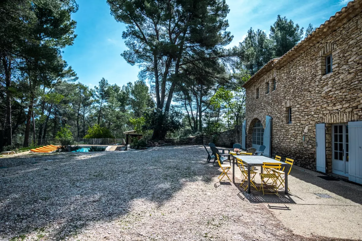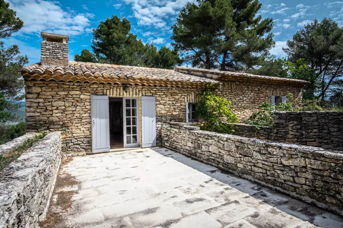 In the shade of pines and holm oaks, nestled in Roussillon on a private ochre hill, 7 minutes walk from the heart of the village, recently renovated Provencal stone farmhouse of approximately 150m2 built on a park of more than 1 hectare without vis-à-vis, ideal for discovering Provence.