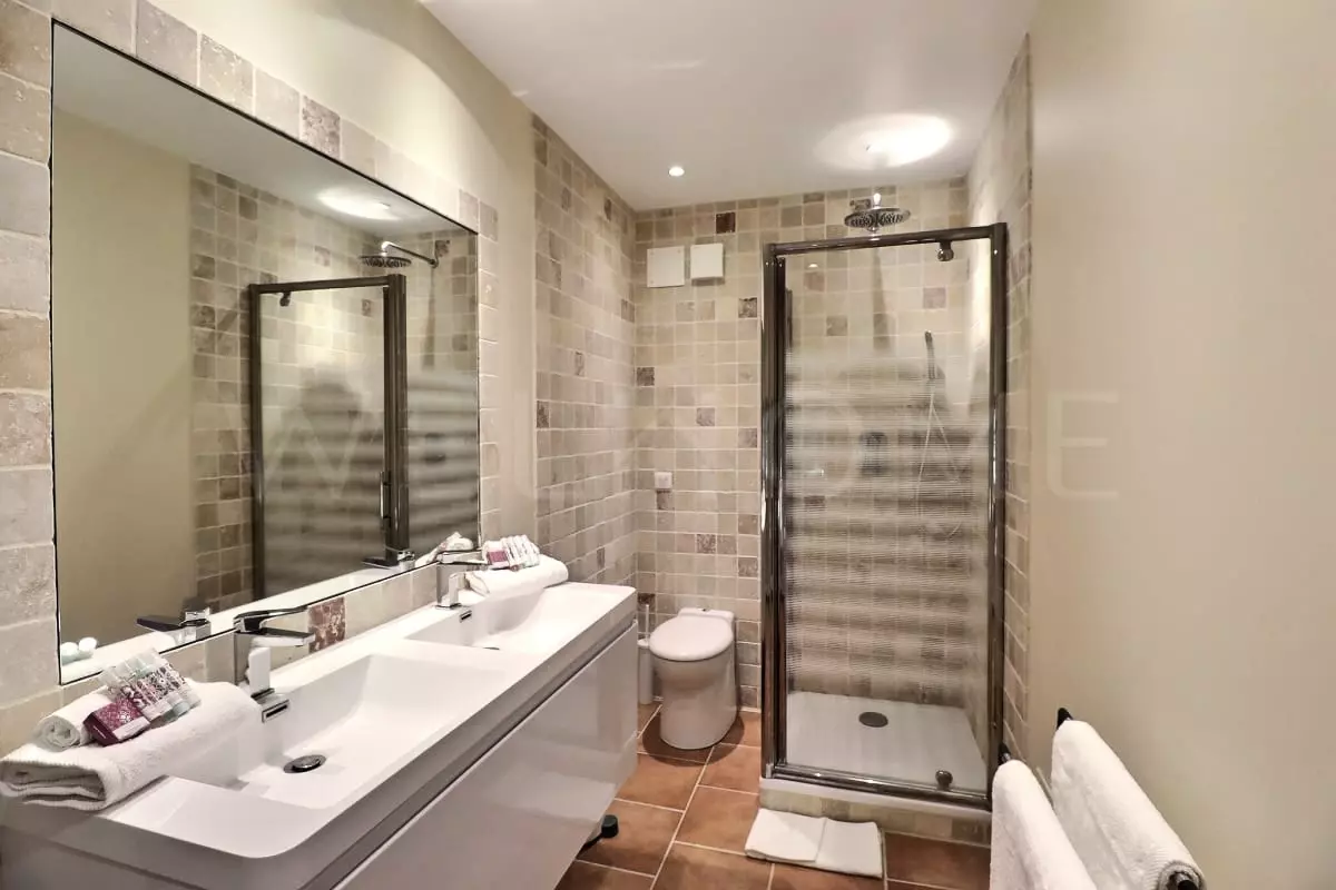 - Bedroom 3: 20 m² bedroom with view of the Luberon mountains, shared bathroom with double sink, shower and toilet, 130x200 bed.