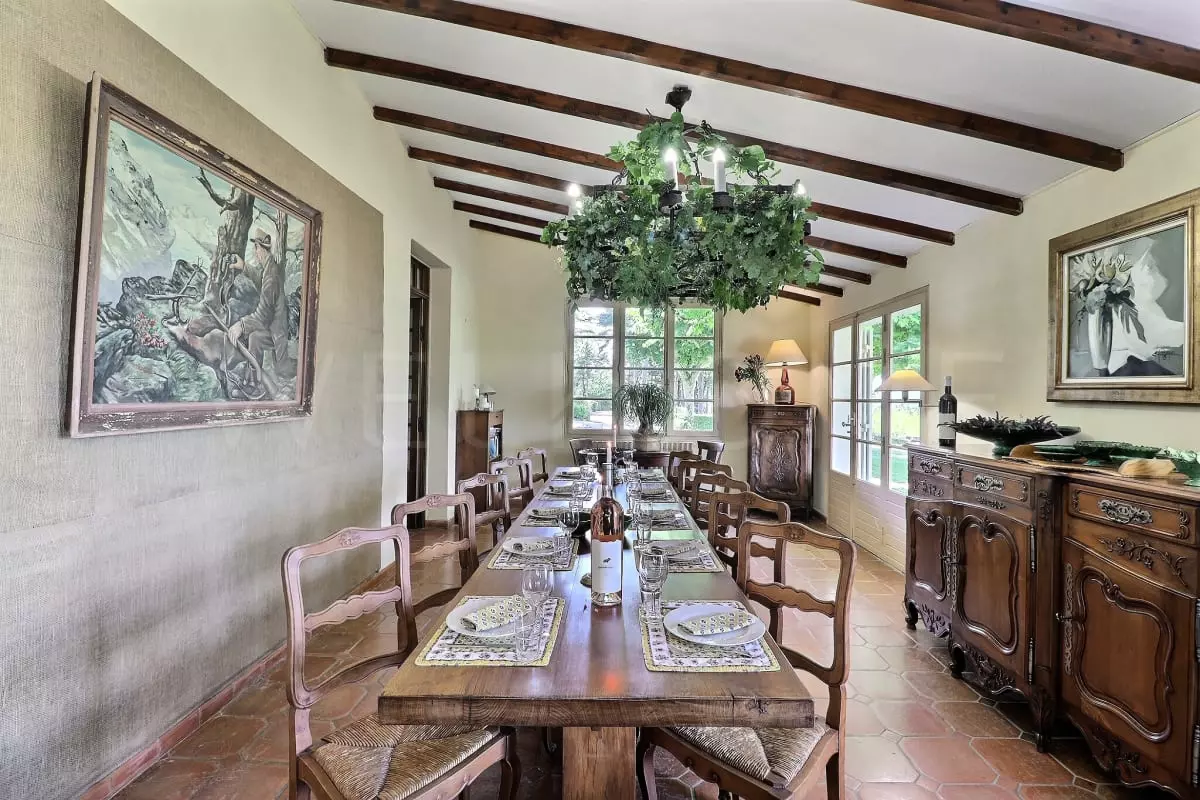 For sleeping accommodations, the country house offers six spacious bedrooms and three suites, each offering breathtaking views of the surrounding mountains, the pool, or the park. Each space has been carefully designed, combining modern comfort with Provençal charm, to ensure peaceful and restful nights.